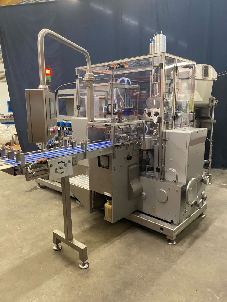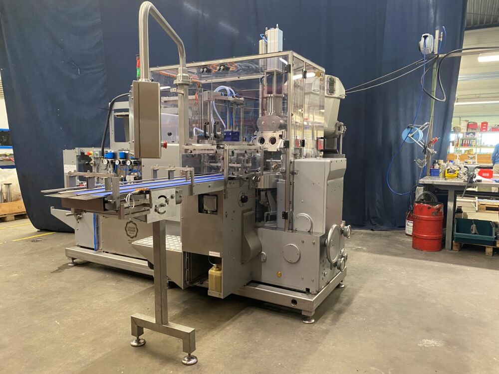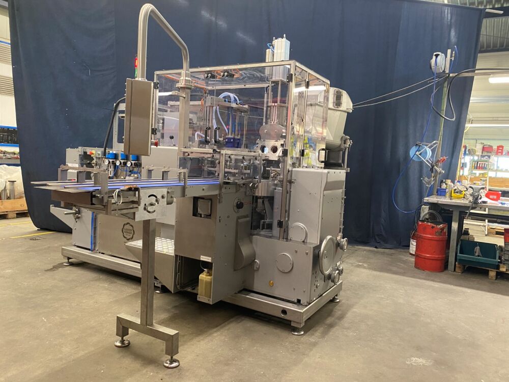 Новый расфасовочно упаковочный автомат после реновации Benhil Multipack 8362 для фасовки масла или маргарина. Benhil Multipack 8362 полностью механический автомат, без гидравлических, электронных, пневматических деталей или таймеров.