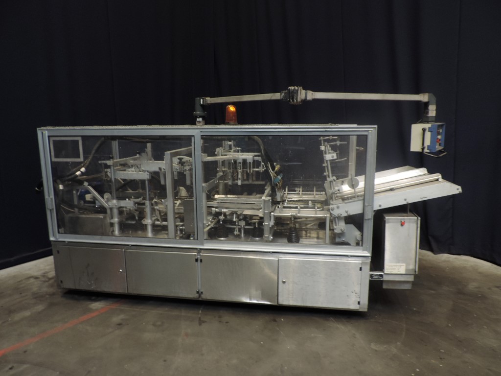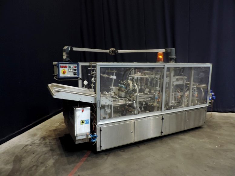 Fully automatic trayformer to make trays with logs from plano, format 3x4 = 12 cups/tray. The trays are formed in 4 steps including a step to glue in the middel of carton for re-inforcement carton by press fingers. Modicon TSX Micro PLC. Excluding hotmelt glue device. Electric scheme and program on disk available.
