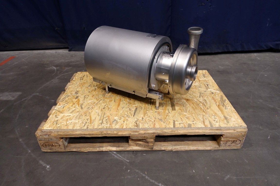 Sanitary centrifugal pump. Current motor: 7,5 kW - 15,5 A - 1.462 rpm - 50 Hz. Impellor diameter: 165 mm. Connections: 3'' / 2,5'', SMS. Total dimensions: 68x38x48 (lxwxh) cm - weight: 127 kg.
