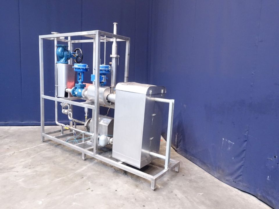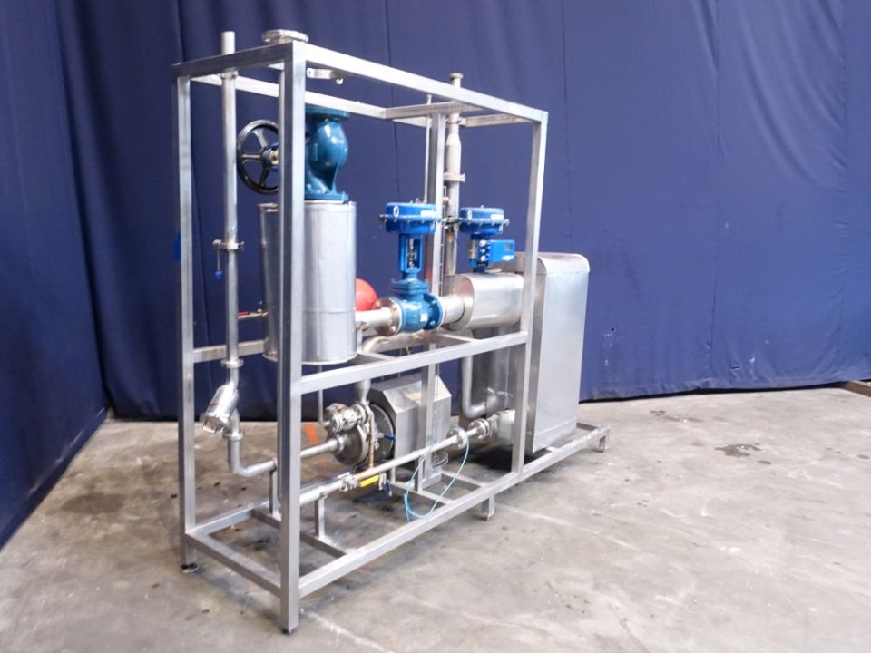 Hotwater set. PHE: Pressure: 7 bar. Beam length: 70 cm, connections: 4'', flange. Currenct configuration: 1 Section: 19 plates - Connections head: 2 up / 2 down. Including Alfa Laval centrifugal pump, year 2009. Type: SOLIDC 2/175 SSS. Motor: 5,5, kW serial number: 118605. Including piping and valves. Total dimensions: 280 x 75 x 235 cm.