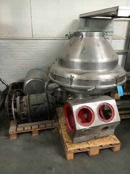 Bactofuge with Bowl (4 nozzels). Clar¡fication of milk to remove bacteria. Designed for continuous operat¡on and ClP. Bowl speed: 4.150 rpm. Motor with stainless steel cover: 37 kW. Excluding: infeed pipe and pump, sludge Cyclone, CPM valves, manouvering water valves, controls or tools.