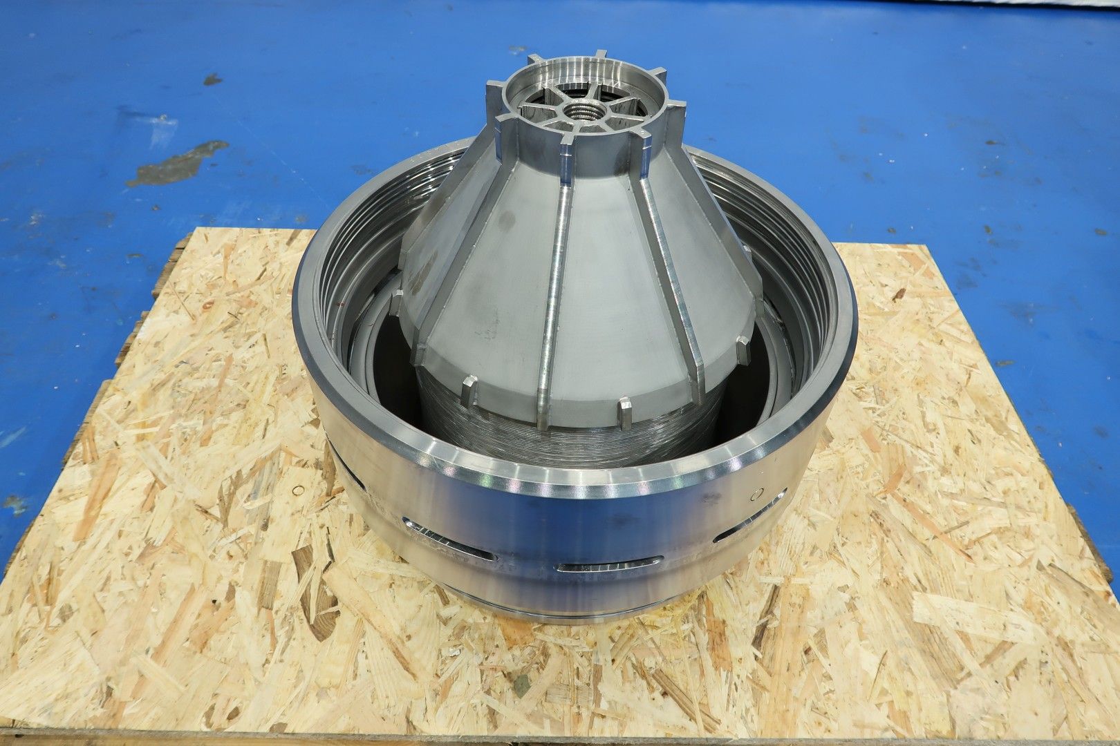 Separator, was used for vegatable fat - oil dehumidification, can be used for separation of any liquids which require to take out water and are below 1kg/ltr, self cleaning. Including bowl, bowl speed: 7.500 rpm, base frame, pneumatic counter pressure valve, OWM and cyclone. Motor 25,0 kW - 1.800 rpm - 60 Hz. Set of tools with ring key and pressing tool. Max. density infeed 1,100kg/m3 on input. Without controls (can be offered upon request).This is a 3 way separator, 1 in and 3 out . Inlet bottom fed (hermetic design), out in top, light clean oil and heavy fase can be water with additives like chemicals, like phosphoric acid and sludge (heavy particles) A separate mix-unit available under STN16080. Documentation: instruction manual and parts list. Dimensions: 155x125x180 (lxwxh) cm - total weight: 1.096 kg. [Valérie Boer 14-04-2026 14:06 (GMT +02:00)] Handleiding boek compleet