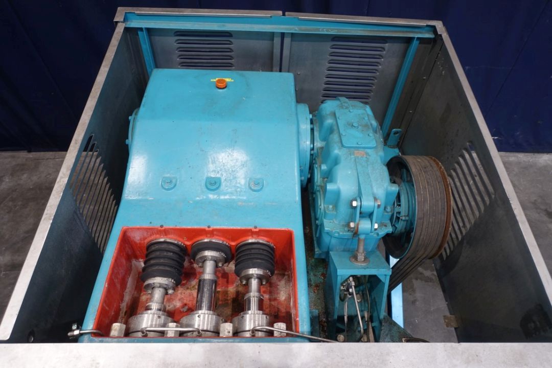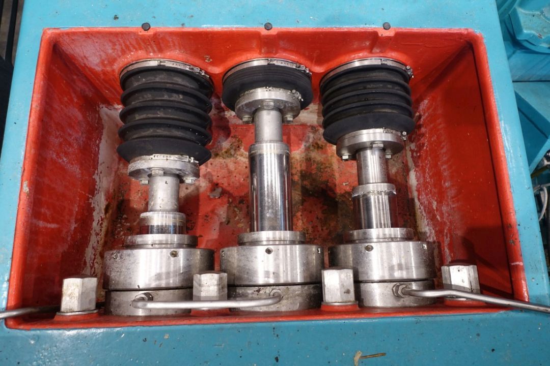 High pressure homogeniser. Previously used for milk. 1 Stage with hydraulic pressure control. Cone valves. 3 Pistons, piston diameter: 80 mm and stroke: 150 mm. Stainless steel cladded. Current motor power: 110 kW and maximum pressure in current confirguration with this motor 200 bar. Overpressure valve. Bypass valve. Manometer on in/outlet. Pulsation demper on inlet/outlet. Excluding controls. Reconditioned in 2014 by Lekkerkerker.