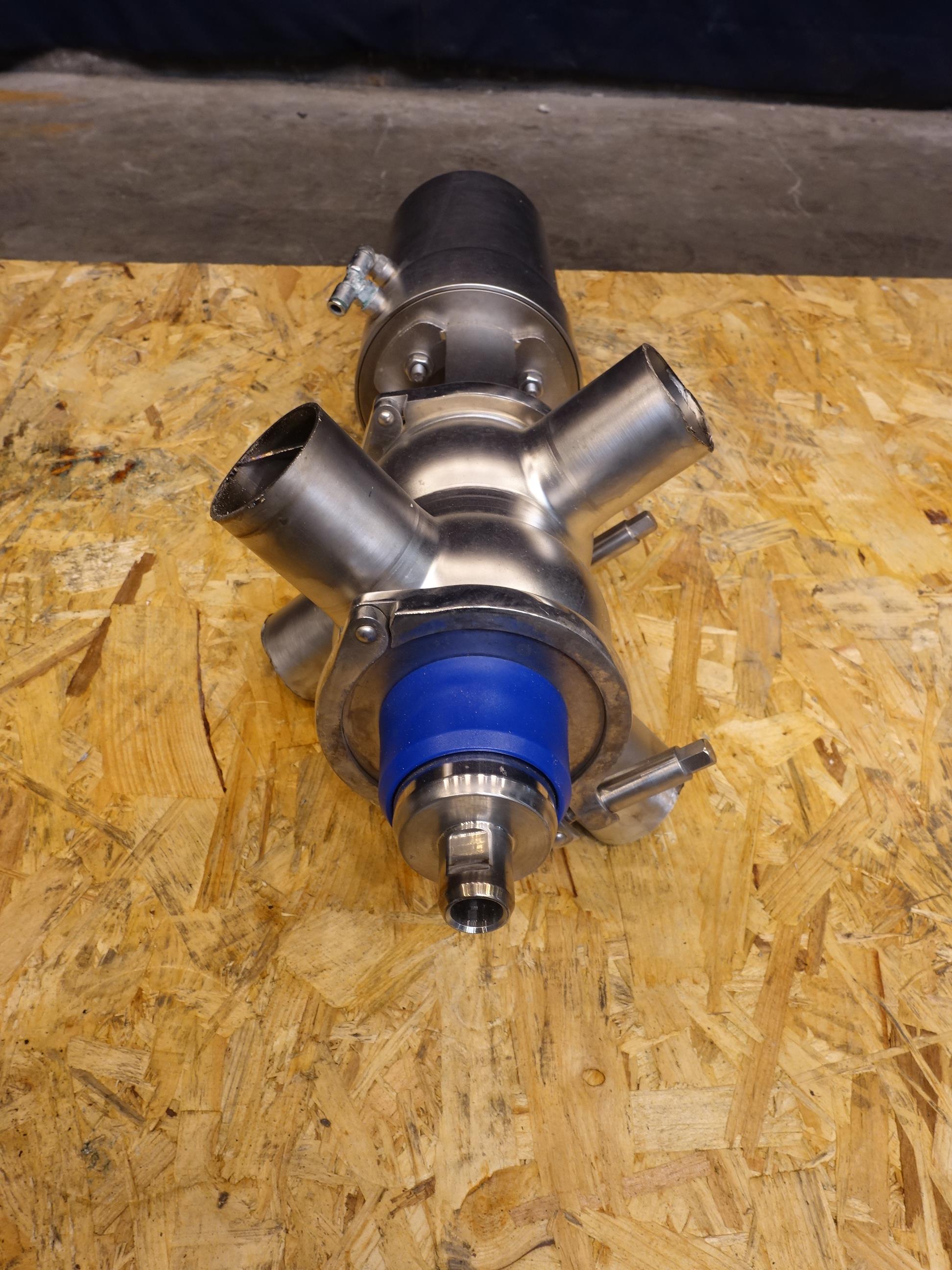 Mixproof valves with seat lift. Pneumatic activated. 4 way. Diameter: 2" (50,8 mm external). Weld-Weld. EPDM gaskets.
