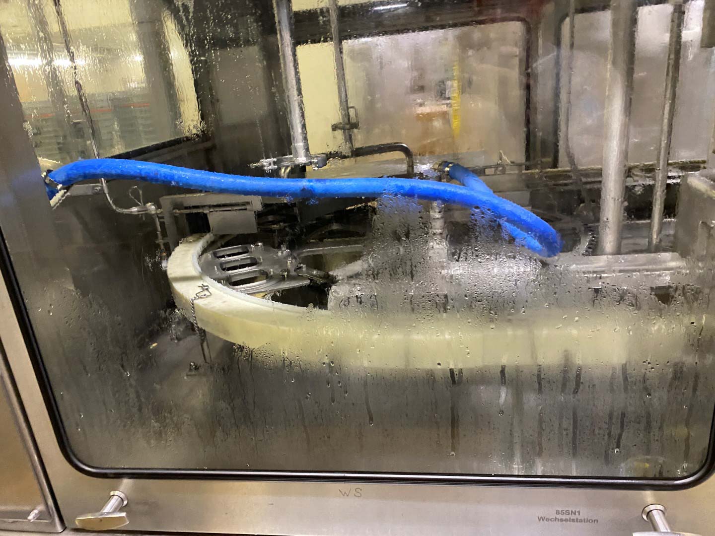 Cup filling, sealing and packing machine (0.25 - 0.5 + 1 liter) Ampack Ammann KF2/3 Ultra Clean Carousel filler for filling and sealing cups with easy format change. Used for filling of yogurt and quark products with a shelf life of up to 40 days in the cold chain. Current cup size 2x round ø 95/ 85 mm & 3x square 85/115, 119 mm. (easy to adapt to round 1 litre but not included). The filling machine has cup decontamination by injecting H2O2 and sterile air flooding, lid decontamination by infra red light. Free space before and after the main fillers for addition fillers in future. Main filler 1: 3 cups each stroke up to 500 ml for round 85 and 95 mm and square 85 mm, main filler 2: 2 cups each stroke up to 1 liter for square 115 and 119 mm. Empty space for 3rd filler for pre-and post-filler. Servo sealing station and dating unit for inkjet (without devices) Controls: Siemens S5. Including CIP return pump. Ampack ASGP4 automatic packer for cups into a tray. Year 1999, controls: Retrofit Siemens S7-1500 (year 2020). Sema Snap lid applicator system to put snap on lid for cups 95 mm, also possible with caps filled with cereals. Year 2014. Working hours: +/- 4.000. Controls: Siemens S7-300. Sema Tray erector: Device for automatic formation of cartons from flat plano carton. Various sizes open trays (see the photo of the cartons with all formats). Complete with Nordson ProBlue 4 hotmelt. Year 2013, working hours: +/-15.000. Controls: Siemens S7-300. "