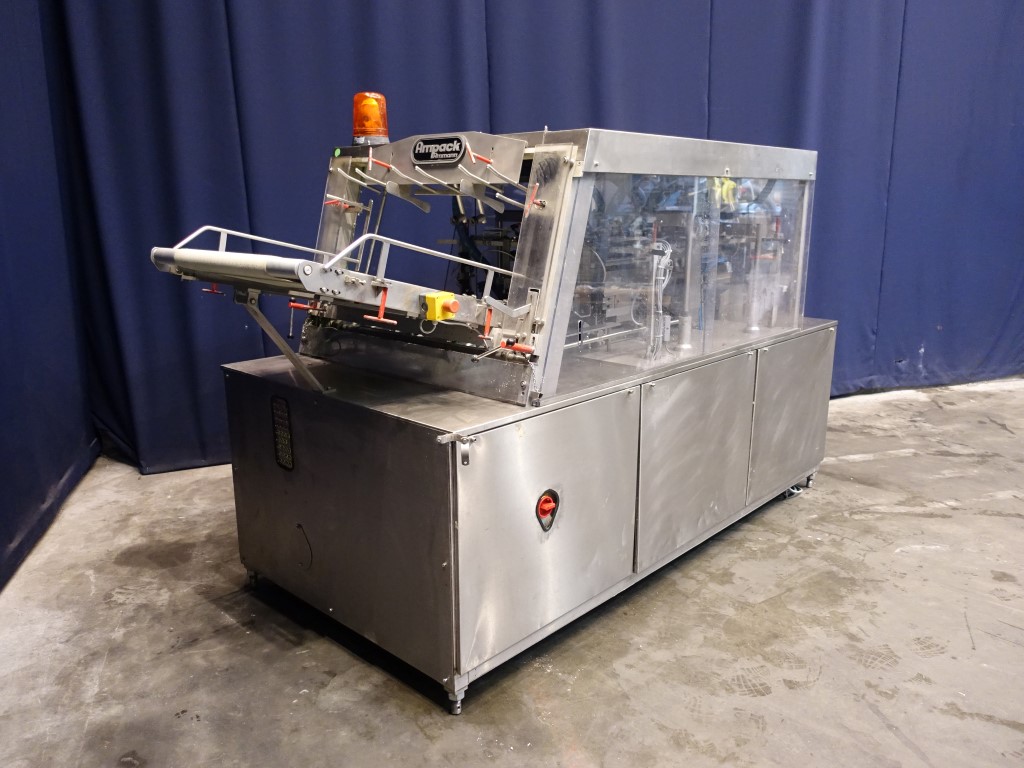 The correct number of this machine is STN14008. Automatic tray erecting and forming machine for closed trays with Nordson Pro Blue 10 hotmelt glue device with 5 hoses and 9 glue points. Tray size standard 3 x 4: 95 mm, ± 29,5 x 37,5 cm. The trays are formed in 3 steps. Siemens Simatic S5 controls. 19.772 working hours. Total dimensions: 340 x 130 x 190 cm. Weight: 900 kg. Users manual, sparparts list and elektical scheme in German language.