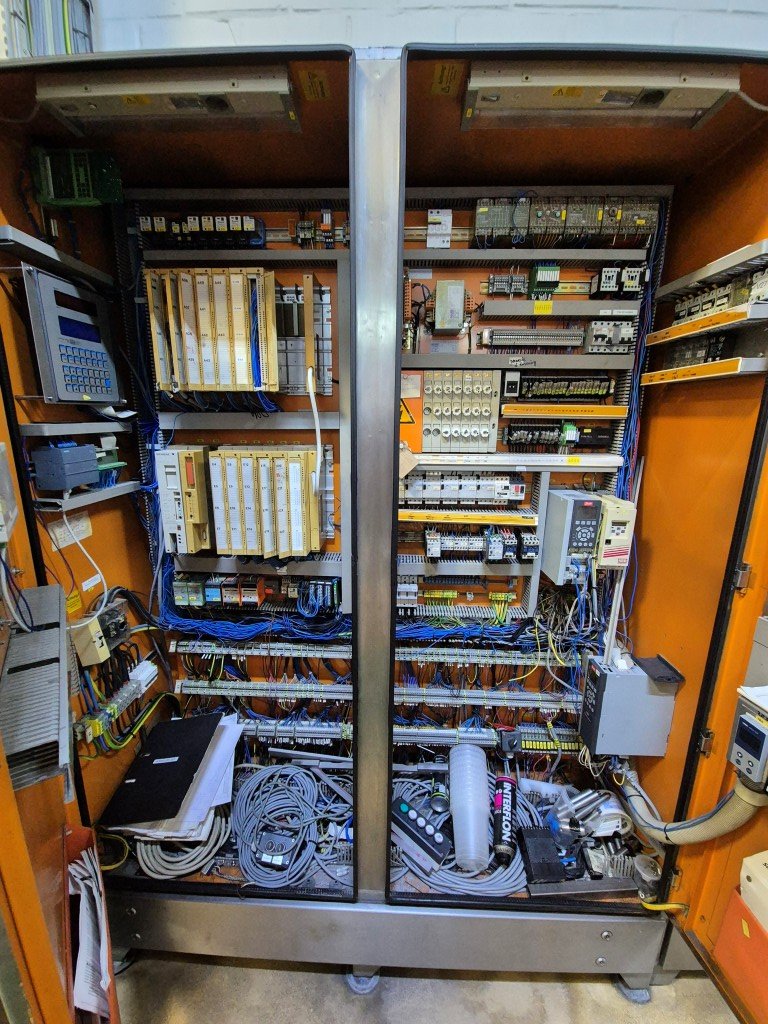 Carousel Cup filling- sealing machine. Formats on this machine round 95 mm. Capacity depends on viscosity and foam properties of the product and shape- and headspace of the packaging. Steps of the machine: 1) Preformed cups unstacking with vacuum, 2) Cup decontamination by peroxide injection and drying with superheated steam in 4 steps. Electric air heater built on the machine. 3)  Predoser, cutting of doser for viscous products like fruit jams,  CIP-cleanable by placing a cleaning bar. 4) Main doser, positive doser, combination filler, flexible for thinner and thicker products CIP-cleanable by placing cleaning bar. 5) Seal decontimanation (by infrared radiators) and applying station . 6) Heat sealing. 7) seal checking station by squeezing the cup and seal detecting. 8) Over Snap cap Lid pressure station (only for 95mm) 9) Outfeed to conveyor belt. Controls: Siemens Simatic S5. Original packer (ASGP4) also available under STN16003. Dimensions ca.: 600x175x280 (lxwxh) cm - weight: ca. 6.000 kg's.