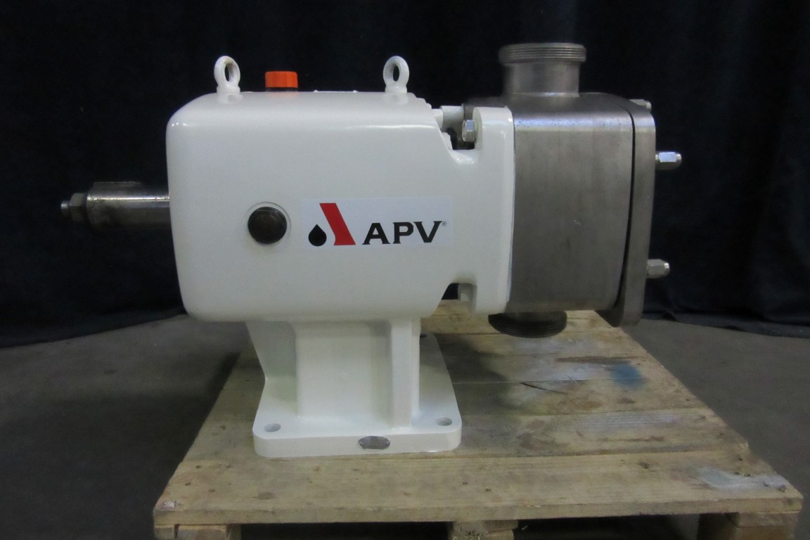 Sanitary positive displacement lobe rotary pump (without motor) for viscose products like curd / cream etc. Pump with Tri-lobe rotor of stainless steel. Connections in-/outlet 4’’. DIN11851. Maximum pressure up to 10 bar, max. 110°C. Displacement 2,92 ltr per rotation.