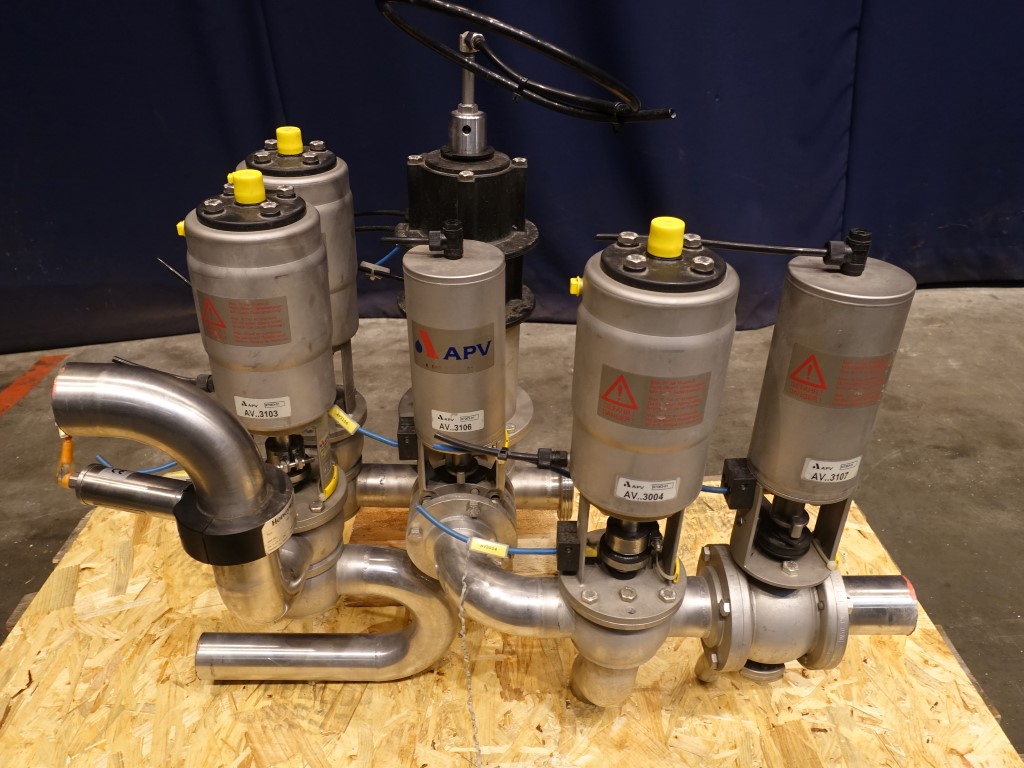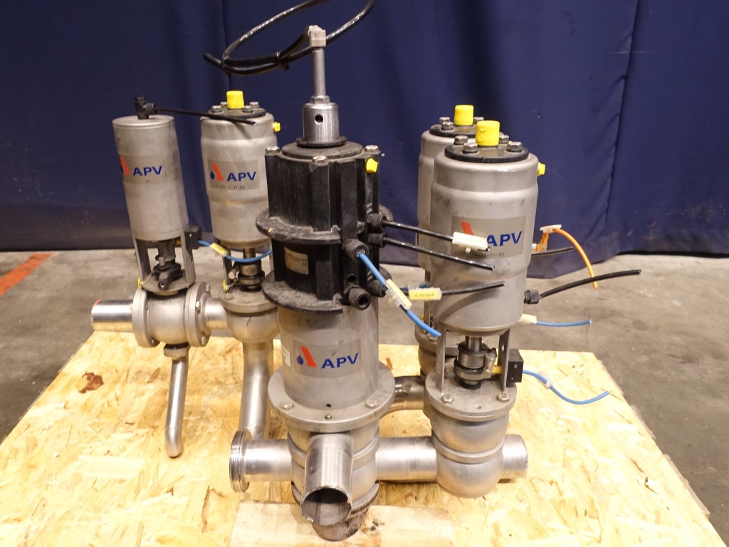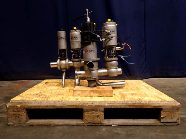 Small manifold with 1x mixproof valve, 4-way, with seal lift. 1x mixproof valve, 2-way. 1x valve 4-way. 1x valve 3-way. 1x ball valve. Diameter: DN50.