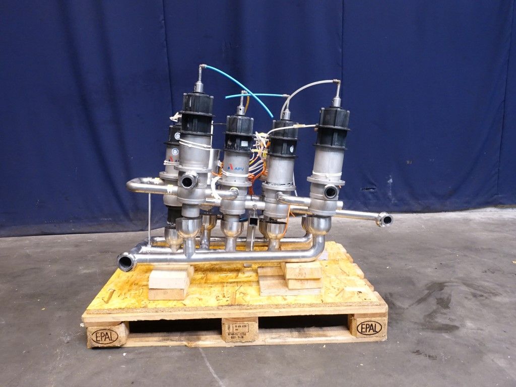 2 x D33 1,5'' - 4 way mixproof double seat valves. 2 x D33 1,5'' - 3 way mixproof double seat valves. 1 x D33 1,5'' - 2 way mixproof double seat valves. All valves welded together.