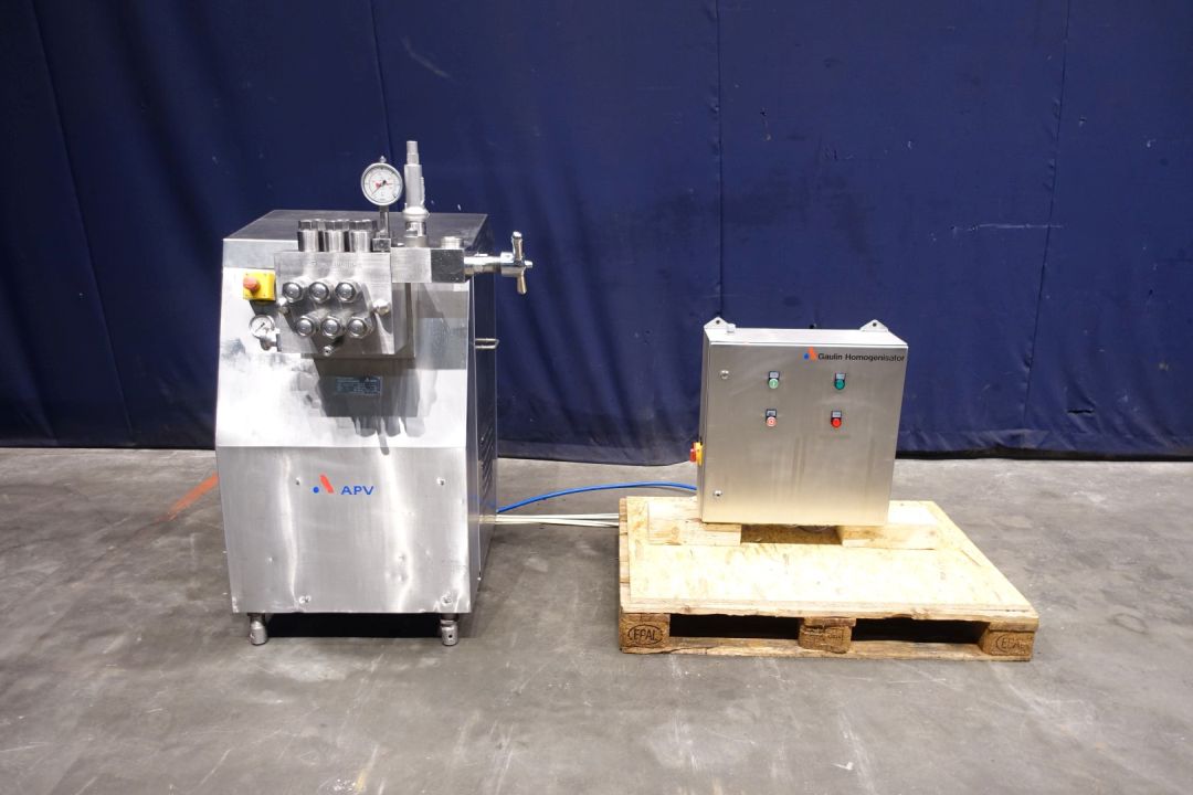 High pressure homogeniser. 1-stage with manual pressure control. 3 Pistons, piston diameter: 32 mm, Stainless steel cladded. Connections: 2x 1,5" Din. Current motor power: 7,5 Kw - 14,7A. and oil circulation pump 0,37kW. Maximum pressure in current confirguration with this motor to 250 bar. Freestanding control panel. Overpressure valve (336bar). Manometer on highest perssure. Total dimensions: 100 x 95 x 145 cm, weigth: 770 kg.