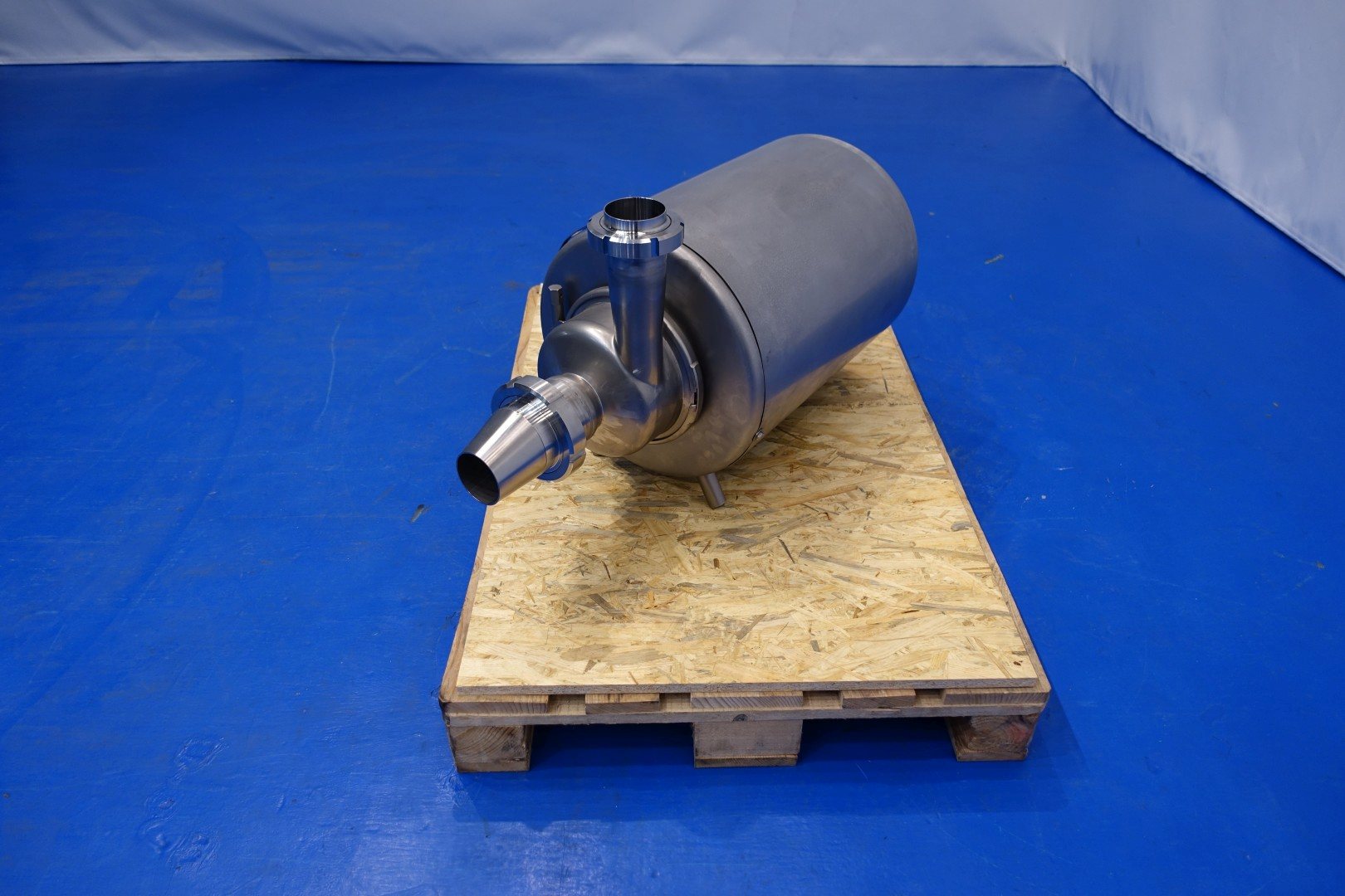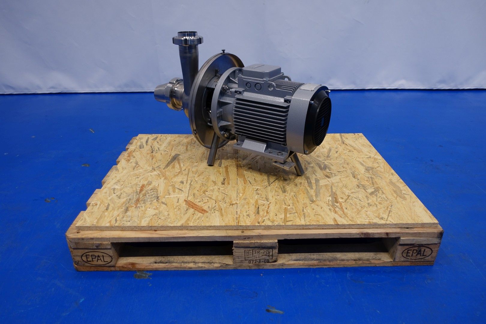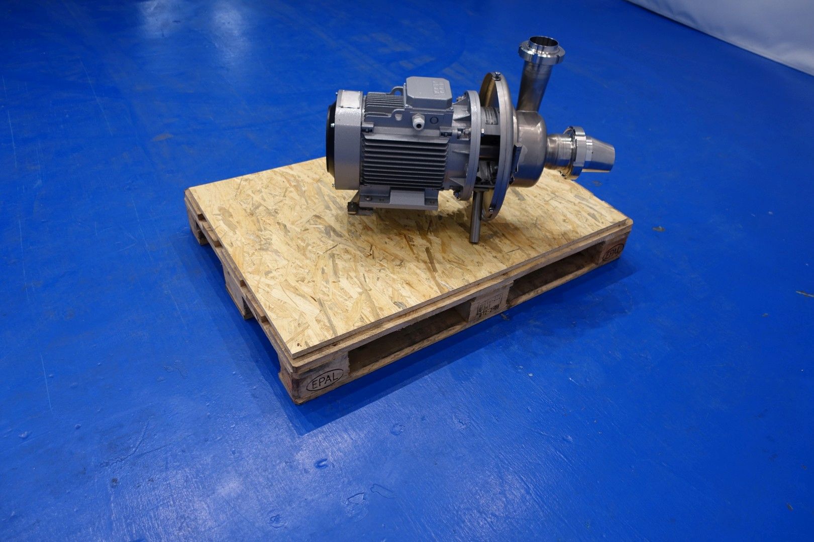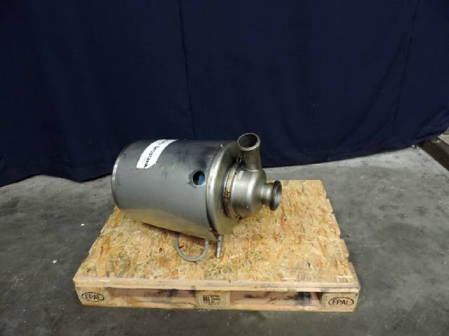 Sanitary centrifugal pump. Order no.: 11272706070710000. Current ABB motor: 7,5 kW – 15 A – 2.885 rpm – 50 Hz. Impellor diameter: 140 mm. Connections: (In) 4'' Din / (Out) 3” Din. Total dimensions: 90x40x52 (lxwxh) cm – weight: 118 kg.