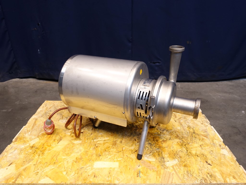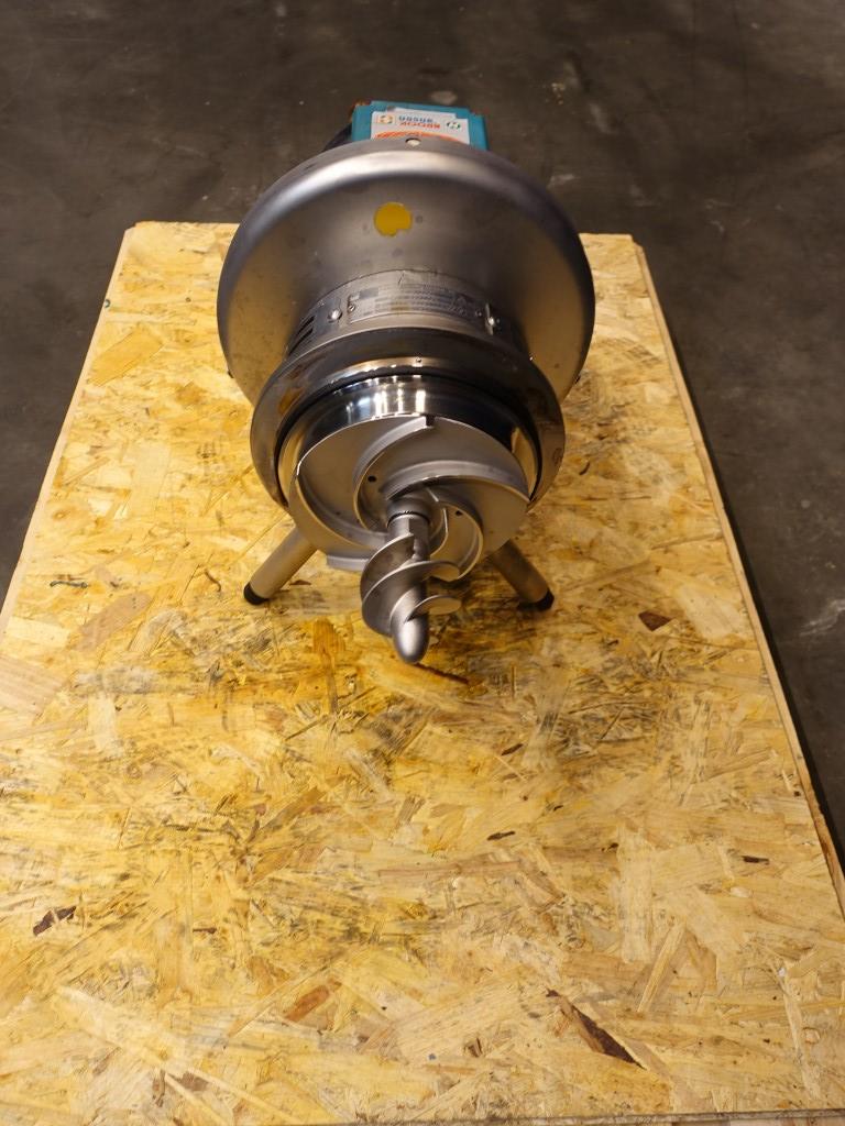 Sanitary inducer centrifugal pump. The inducer boosts the inlet pressure, and the risk of cavitation is correspondingly reduced. Current motor: 4.0 kW - 7,5 A - 2875 rpm. Impellor diameter: 175 mm. Connections: DN65 / DN50, SMS.