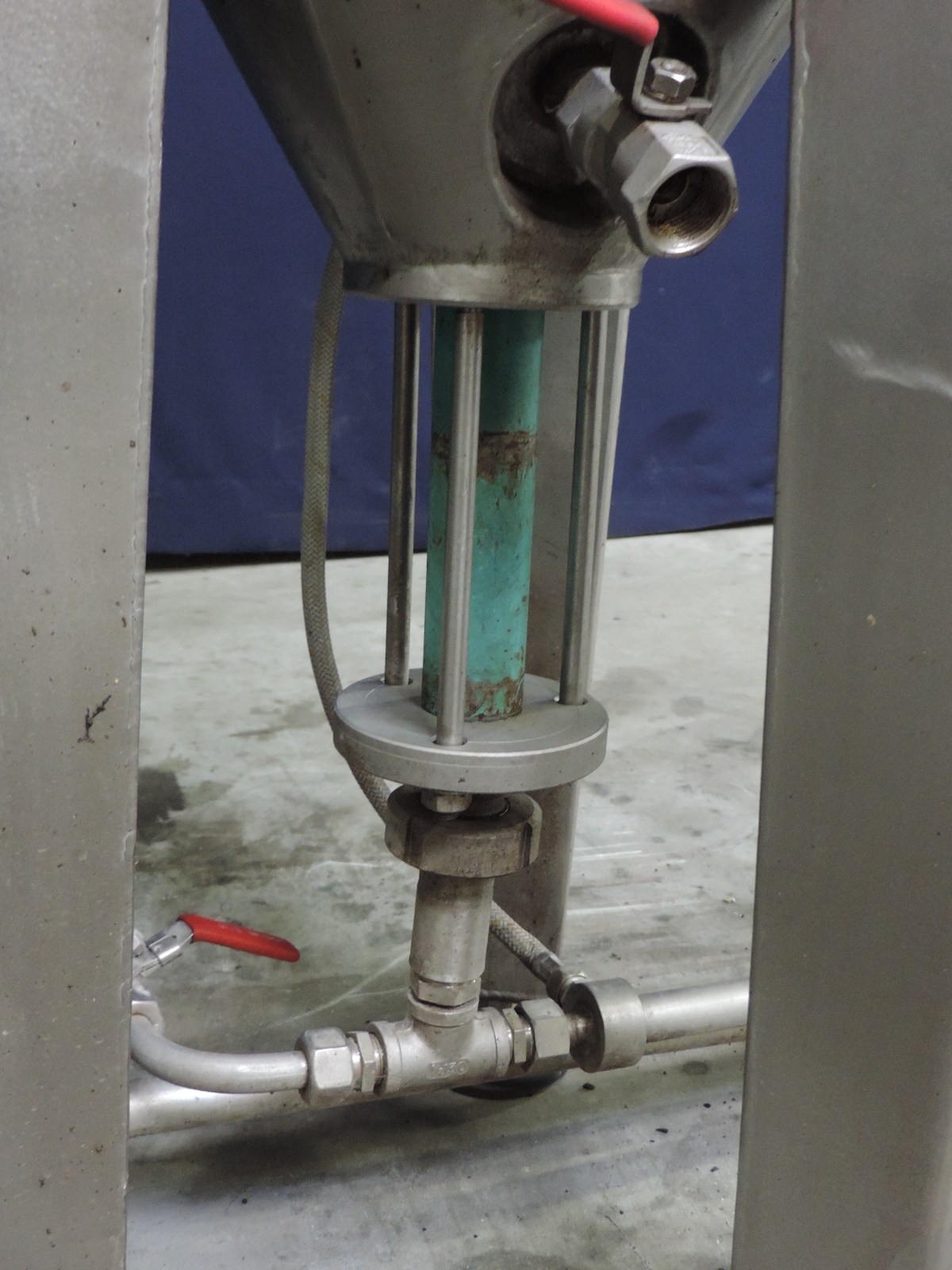 Single jacketed tank with drain agitator. Three legs. Engine: 380 V - 0,75 kW - 1680/88 rpm - 2,15 A. Inner dimensions: diameter 40 cm, heigth 50 cm.