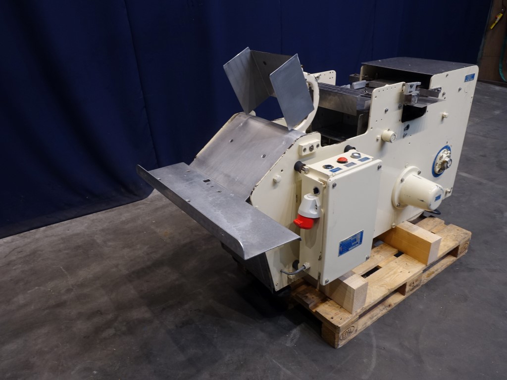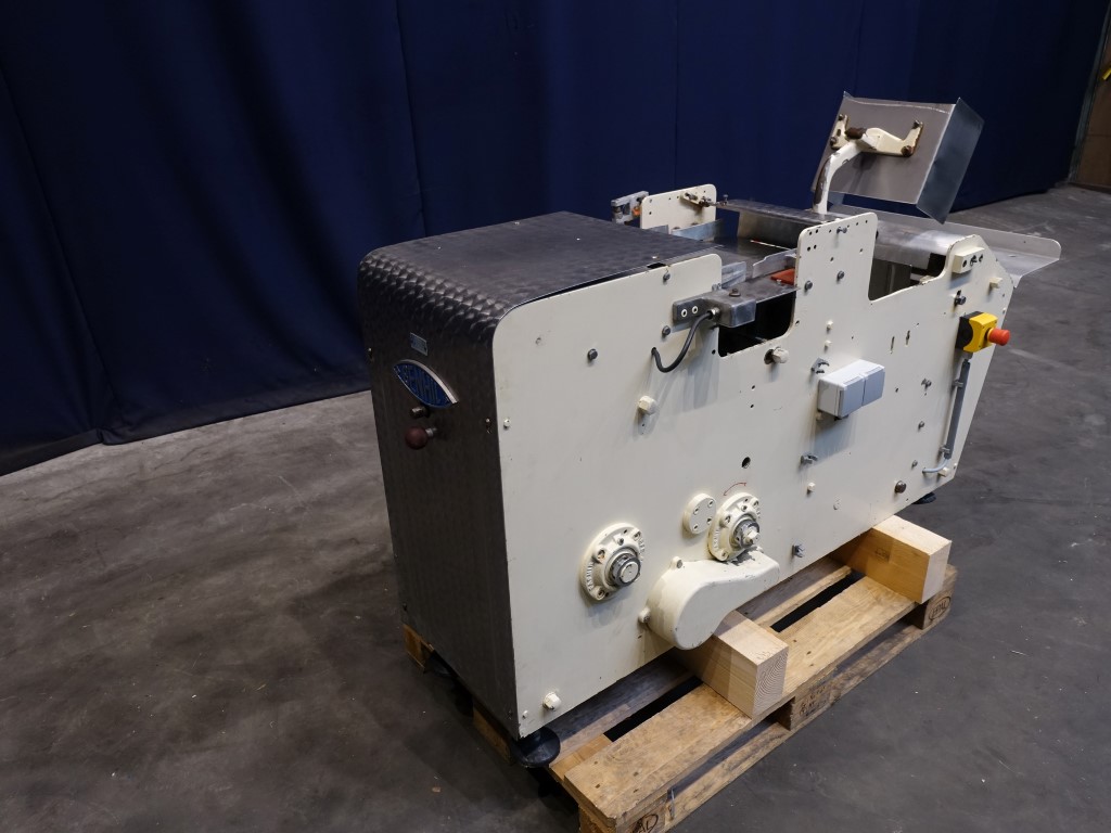 Semi automatic case packer for carton boxes. Box size: 250 x 290 x 150 mm. Control panel with relay control. Total outside dimensions: 200 x 100 x 130 cm.