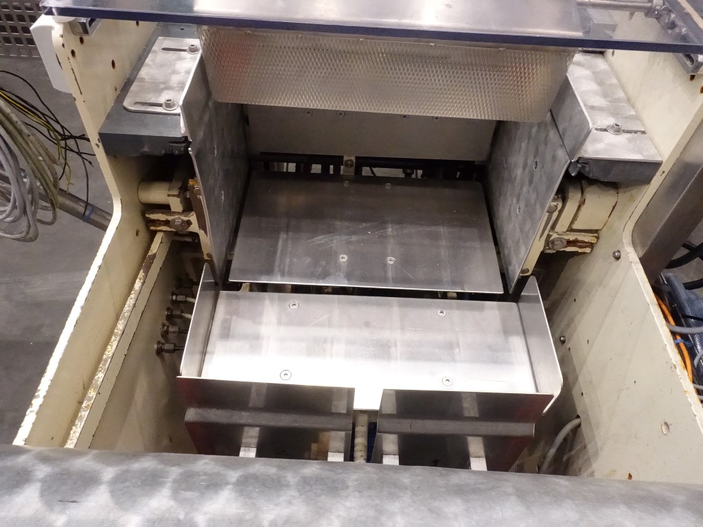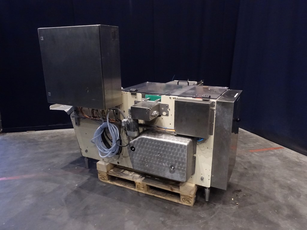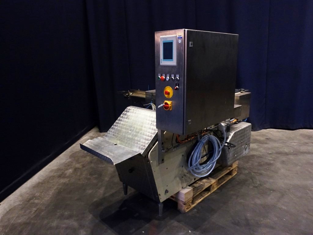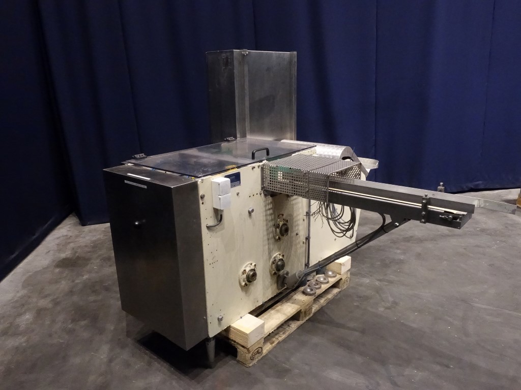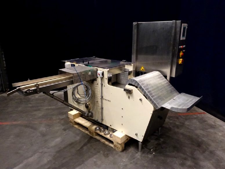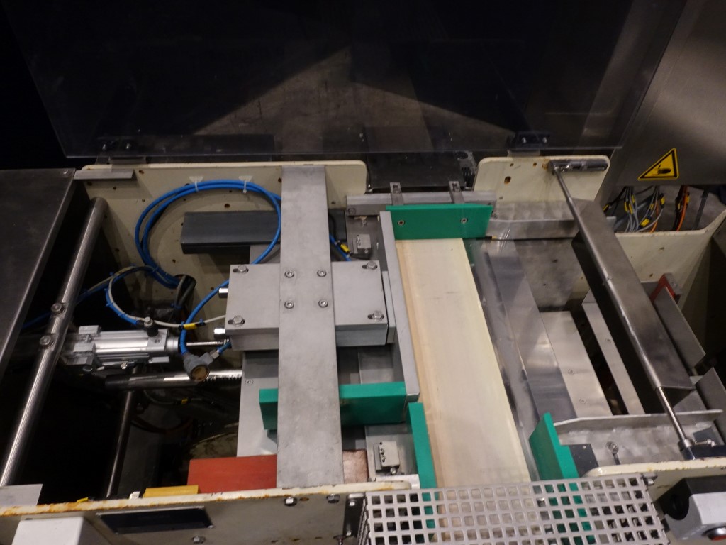 Semi automatic case packer for carton boxes. Used for 1.000 gram, 160 x 80 x ± 80 mm packages of butter. 2 format sets for this machine Box size: 160 x 410 x 80 mm, Packscheme of the box: 1 x 5 x 1 = 5 packages per carton = 5 kg per carton. Box size: 160 x 410 x 160 mm, Packscheme of the box: 1 x 5 x 2 = 10 packages per carton = 10 kg per carton. Control panel with Siemens S7 PLC control ans Siemens HMI touch screen. Machine overhauled in 2014, users manual, parts list and elektric scheme in German language. Has been running together with a Benhil 8345 foil packing and wrapping machine for butter.