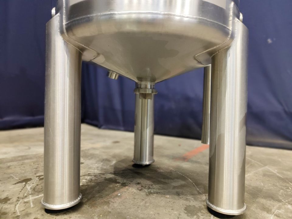 Balance tank. Open top with cover. Pressure in tank atmospheric. Overflow pipe. 3 legs. Total dimensions: 105 x 90 x 210 cm.