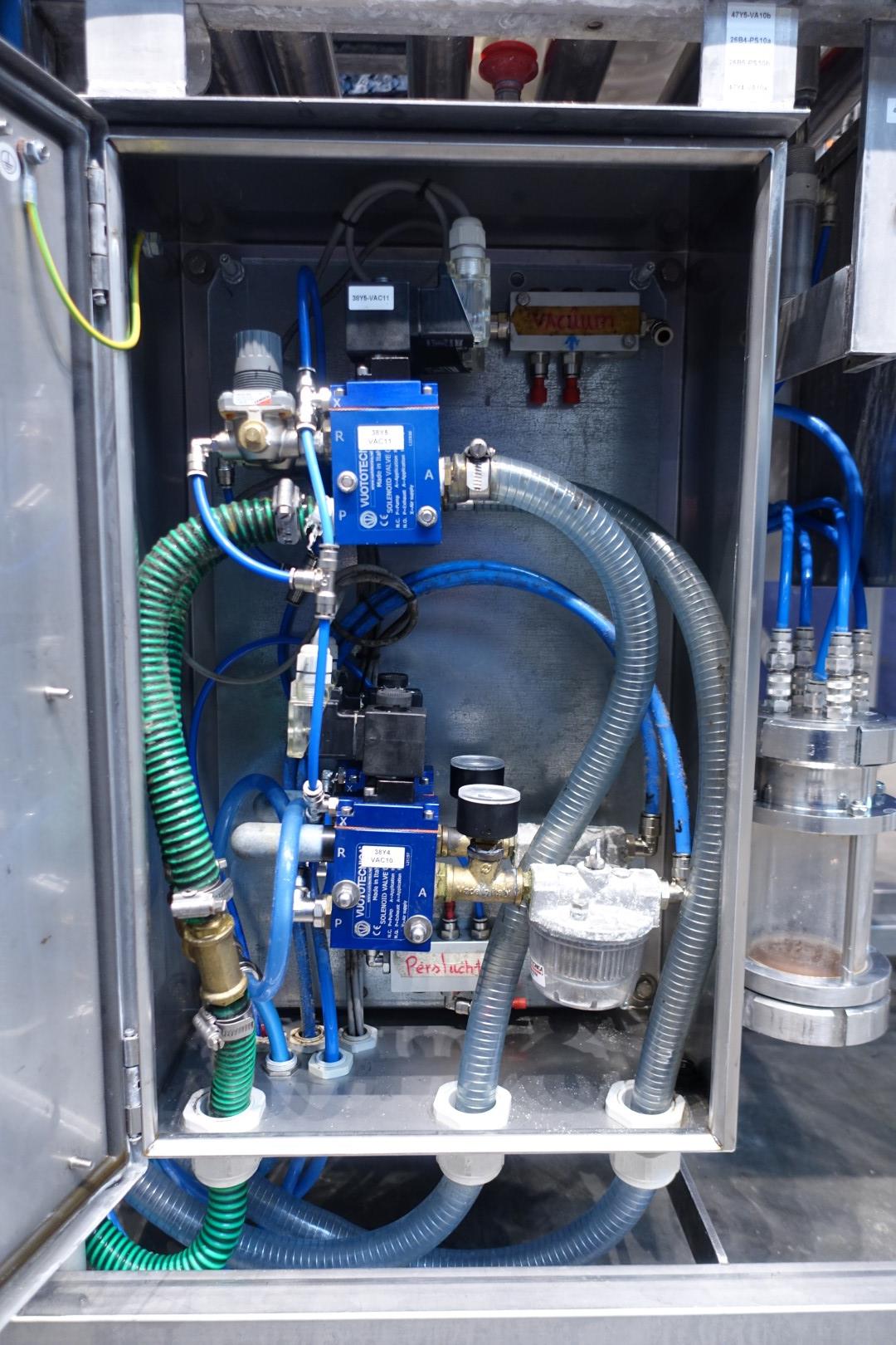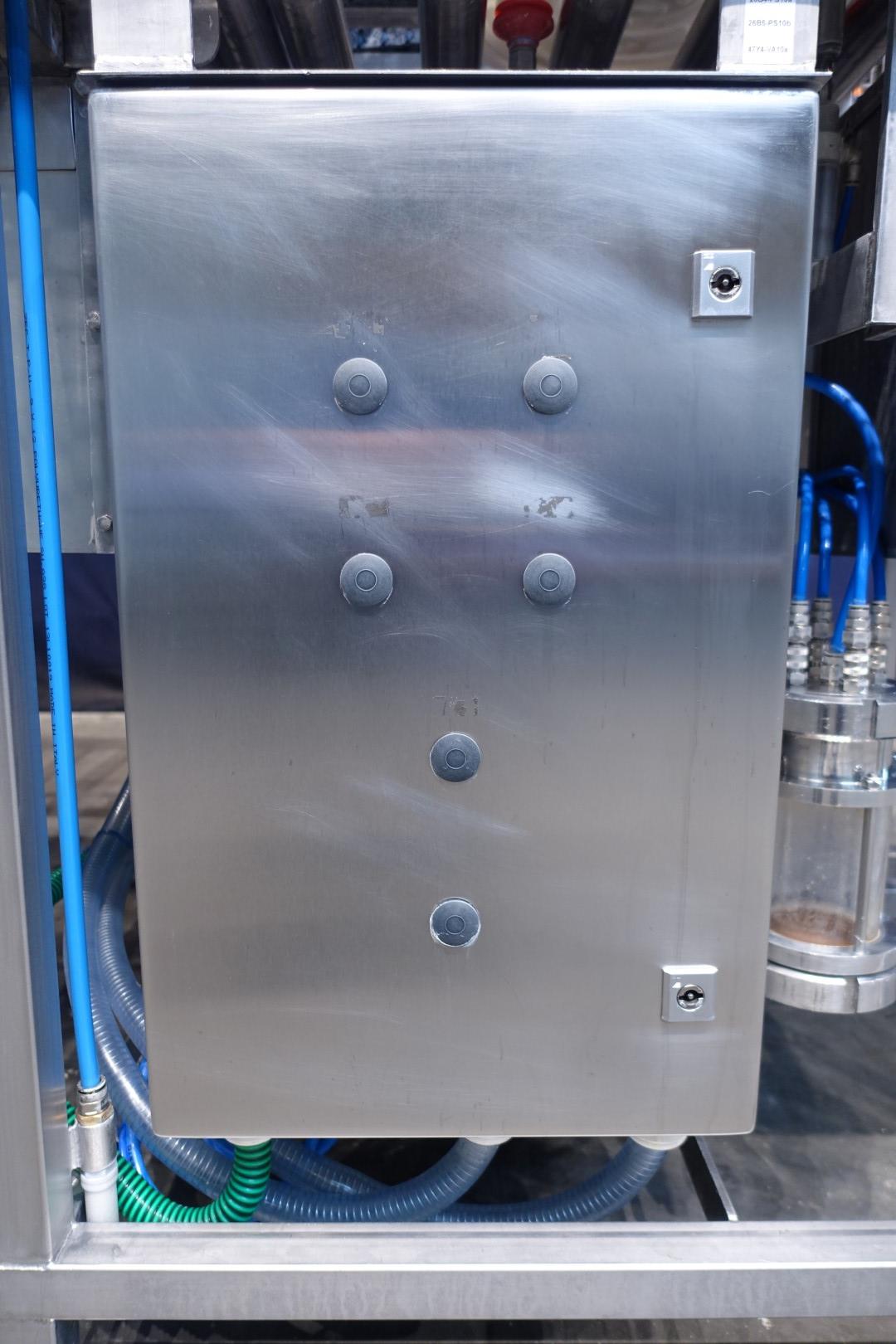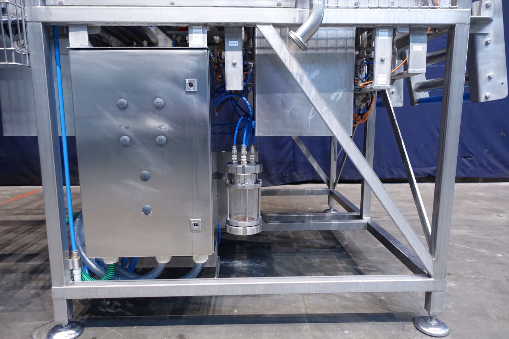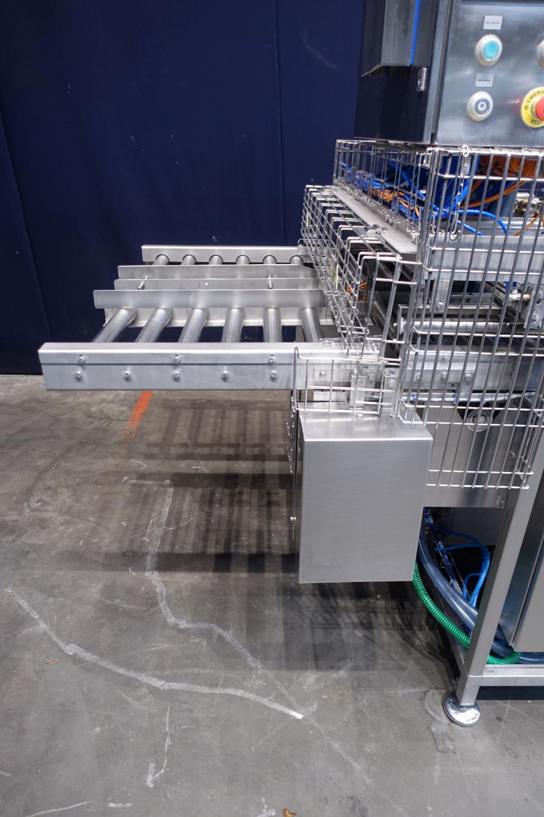 Soft cheese cutting and stuffing machine. 140 Pieces Brie per hour per belt, in total 300 pieces with 2 belts. Power: 5,1 kW - 15,7 A - 50 Hz - compressed air 25 L/min - 6 bar. Total dimensions: 262 x 155 x 282 cm. Weigth 870 kg's. Unique design machine for making stuffed cheese from a standard semi soft cheese like Brie, Camembert or Columbier etc. A round cheese with a diameter of around 330 mm and with a weight of around 3-5 kg are cut, stuffed with a pumpable cream cheese. Working principle: inlet by a roller conveyor, then cut the cheese in half horizontally. Pick-up the top of part of the cheese and lift it. Then the underside of the brie is stuffed with a layer of a viscose product like a pumpable cream cheese or processed cheese. The last step is to place the upperpart of the cheese back on top. Ideal for ‘bites’ like products with different cheeses mixed. Stand-alone unit. Including SS safety fences, CE marked. Including Siemens S7 and HMI control panel. A video of the machine in production can be send on request.