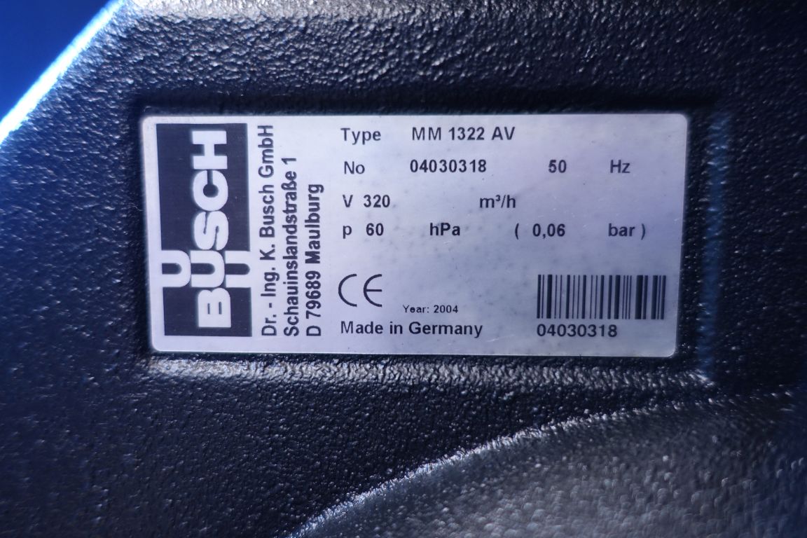 Vacuum pump. Capacity: 320 m3/h. Absolute pressure: 0,06 bar. Motor 5,5 kW - 12.3A - 2880 rpm.