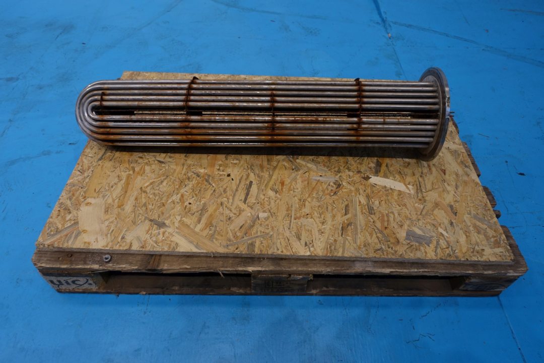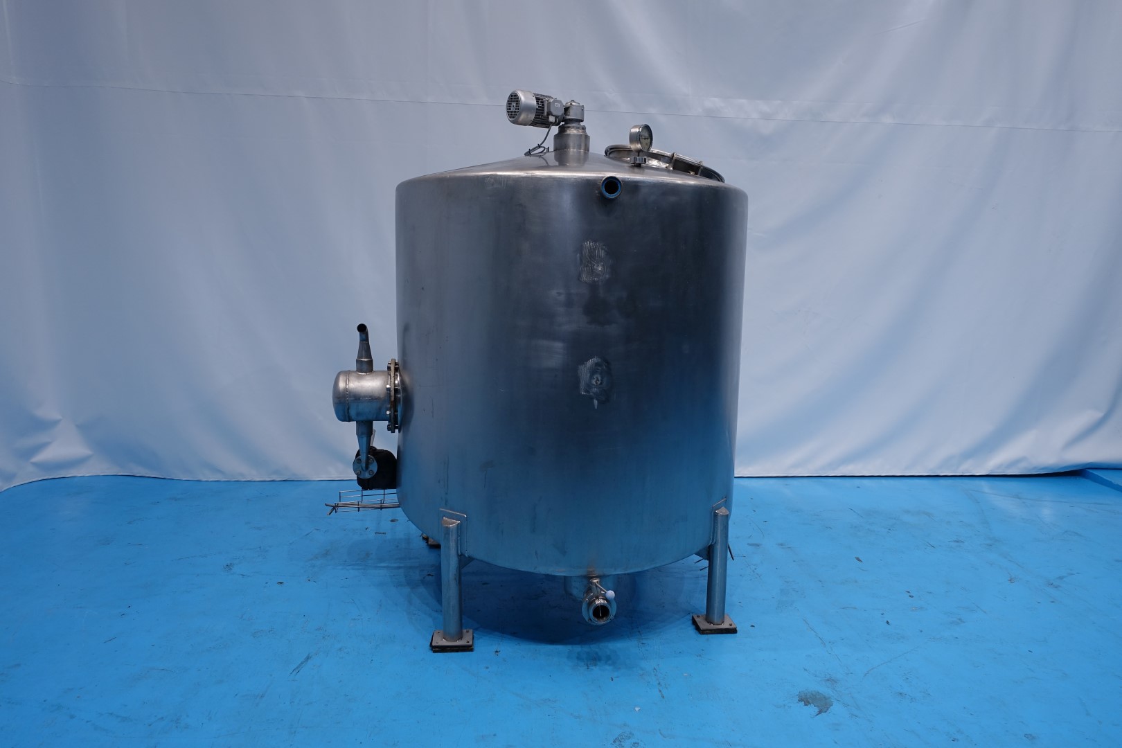 CIP tank with agitator and spiral tube heater inside the tank. Blade agitator - engine: 0,37 kW - 1,2 A - 1.370 rpm - 50 Hz. Spiral tube heater: 86 pipes - inner pipe Ø 10 mm - tube Ø 260 mm - tube length 98 cm. Manhole Ø 50 cm. Tank dimensions inside: Ø 1,45 meter - cylindrical height: 1,20 meter. Connections 1 x 2,5 " Din - 1 x DN80 Din - 1 x 2,5" SMS. Total dimensions: 180x165x230 (lxwxh) cm - weight: 291 kg.