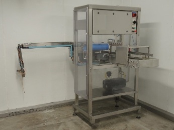 Packing machine to put 6 x 4 pieces in 1x tray including infeed conveyor, outfeed conveyor and integrated Busch vacuum pump. Control panel with Siemens S7-200 PLC. Motor: 1 kW, 400 Volt.