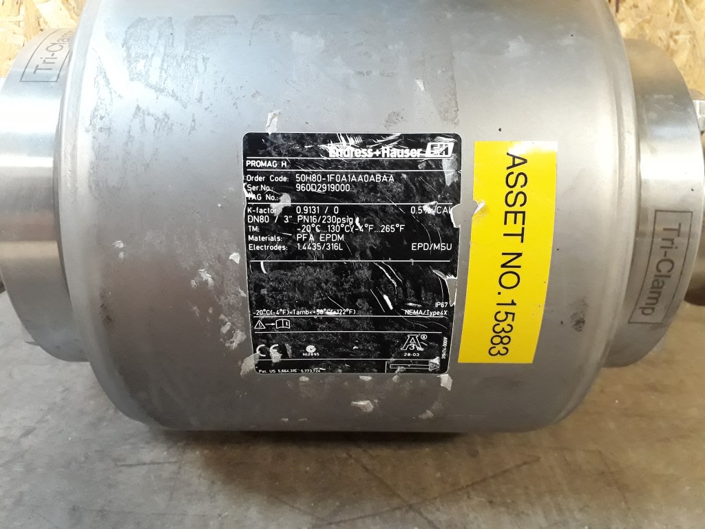 Electromagnetic flowmeter (transmitter and sensor) for smallest flow rates with a modular electronic concept for demanding hygienic applications. Connections: 3'', triclamp. Electronic display. DN80 / 3" PN16/230psig. Tm: -20 ° / 130 °C. Materials: PFA EPDM. Electrodes: 1.44435/316L. IP67.