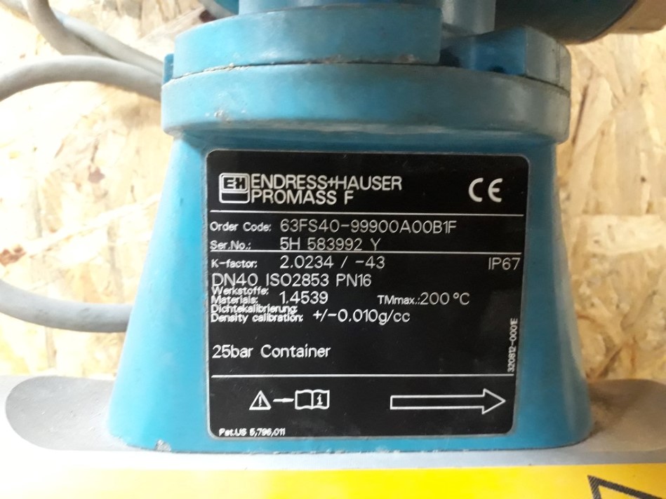 Mass Flow Measuring System (transmitter and sensor) for measuring the mass and volume flow of fluids having widely different characteristics such as condensed milk, oils and fats, acids, chocolate, syrups etc. Connections: DN40, ISS. Electronic display. DN40 ISO2853 PN16. TMmax 200 °C. 25 bar Container. Materials: 1.4539. IP67.