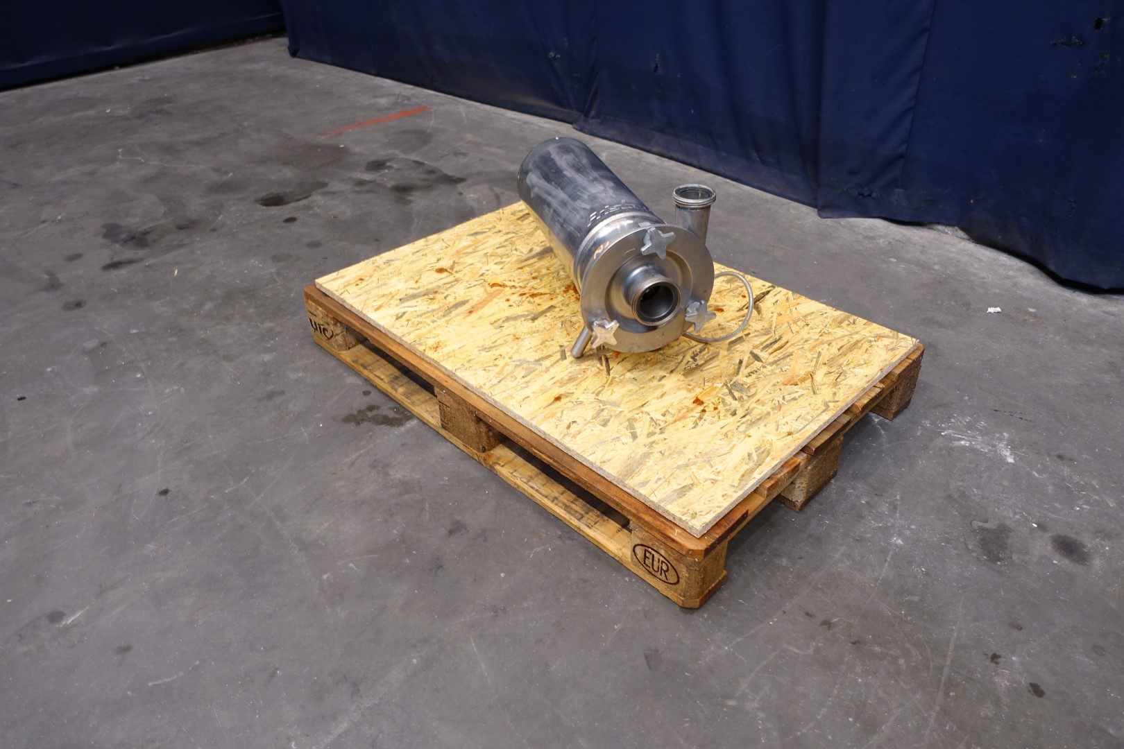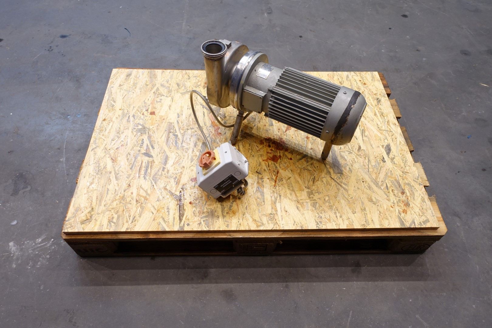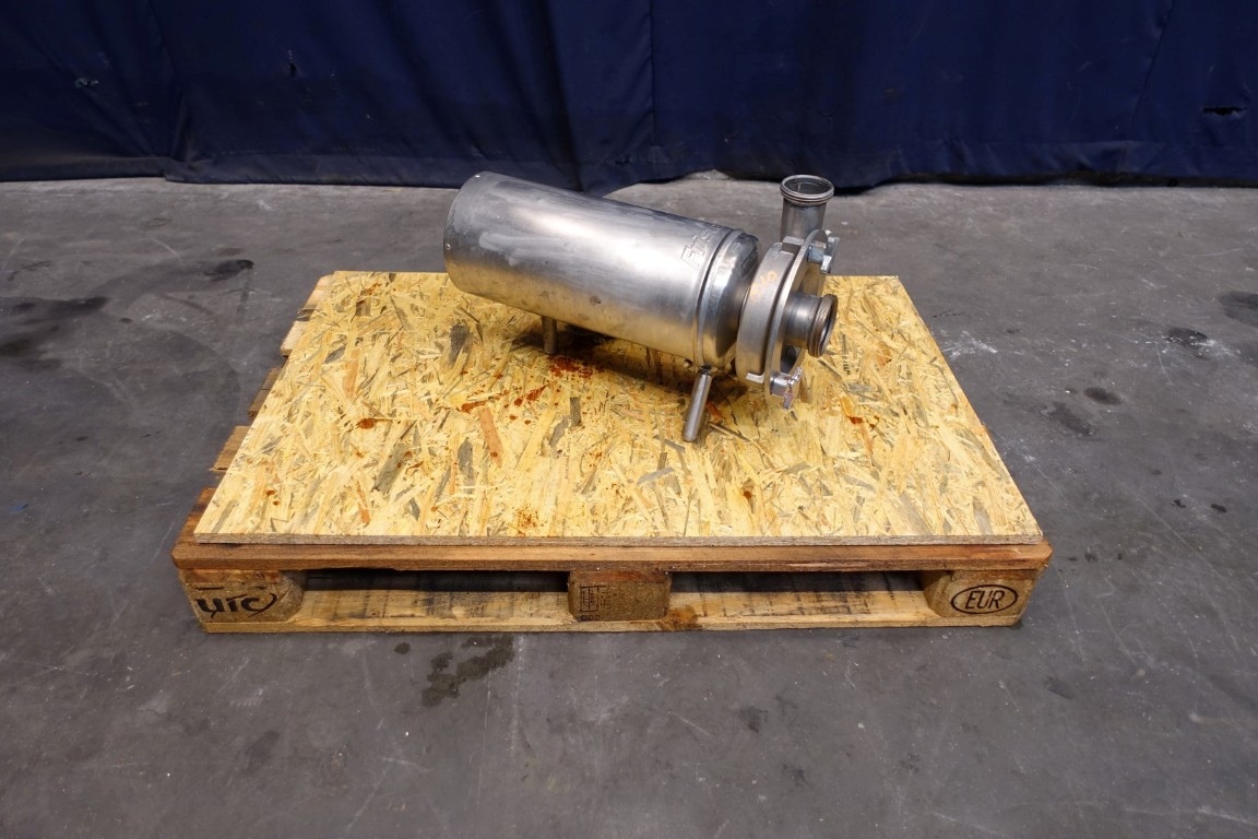 Sanitary centrifugal pump. Motor: 3,0 kW - 6,9 A - 2.860 rpm - 50 Hz. Impellor diameter: 125 mm approx 2bar. Connections: (in) 3,0" Din / (out) 2,5" Din.