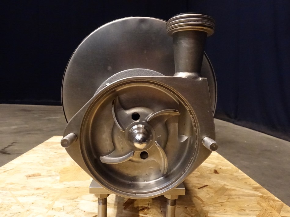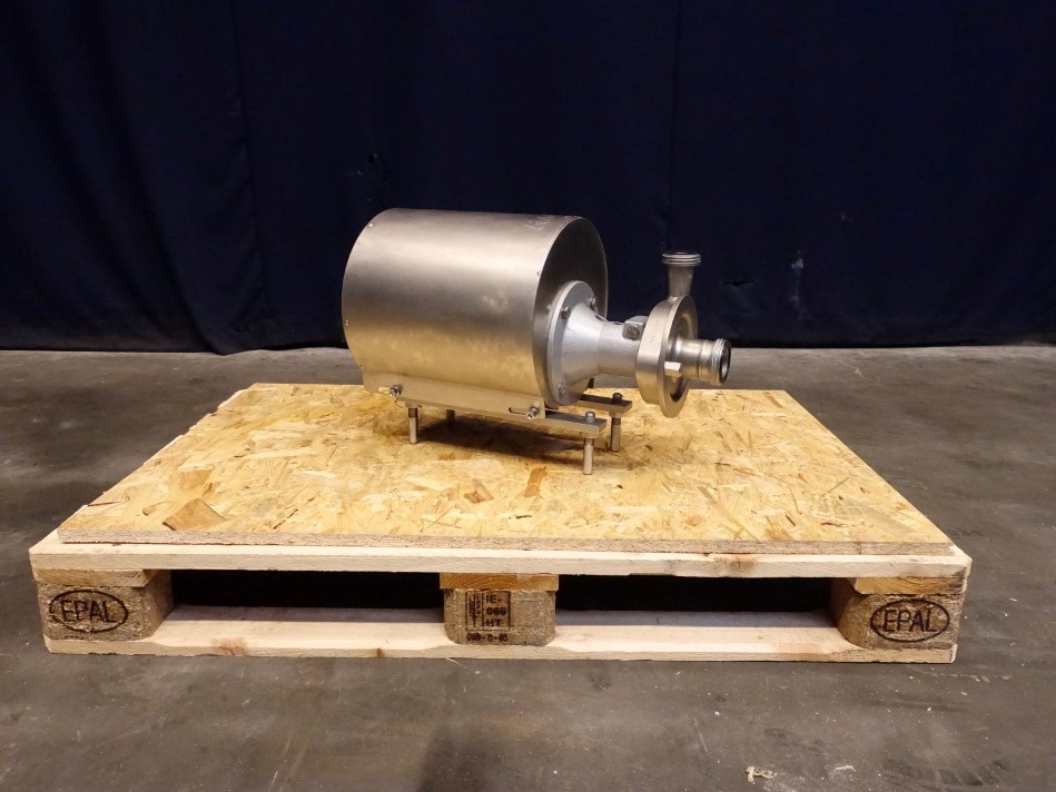 Already reconditioned centrifugal pump. Motor: 1,1 kW -2,4 A - 2830 rpm. Impellor diameter: 120 mm. Connections: inlet 2'' SMS / outlet 1.5" SMS. Capacity: 5.000 ltr/h @ 1,8 bar - 22.500 ltr/h @ 1 bar.