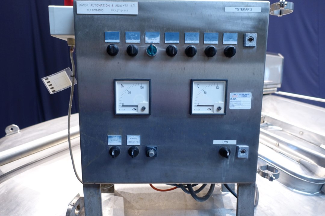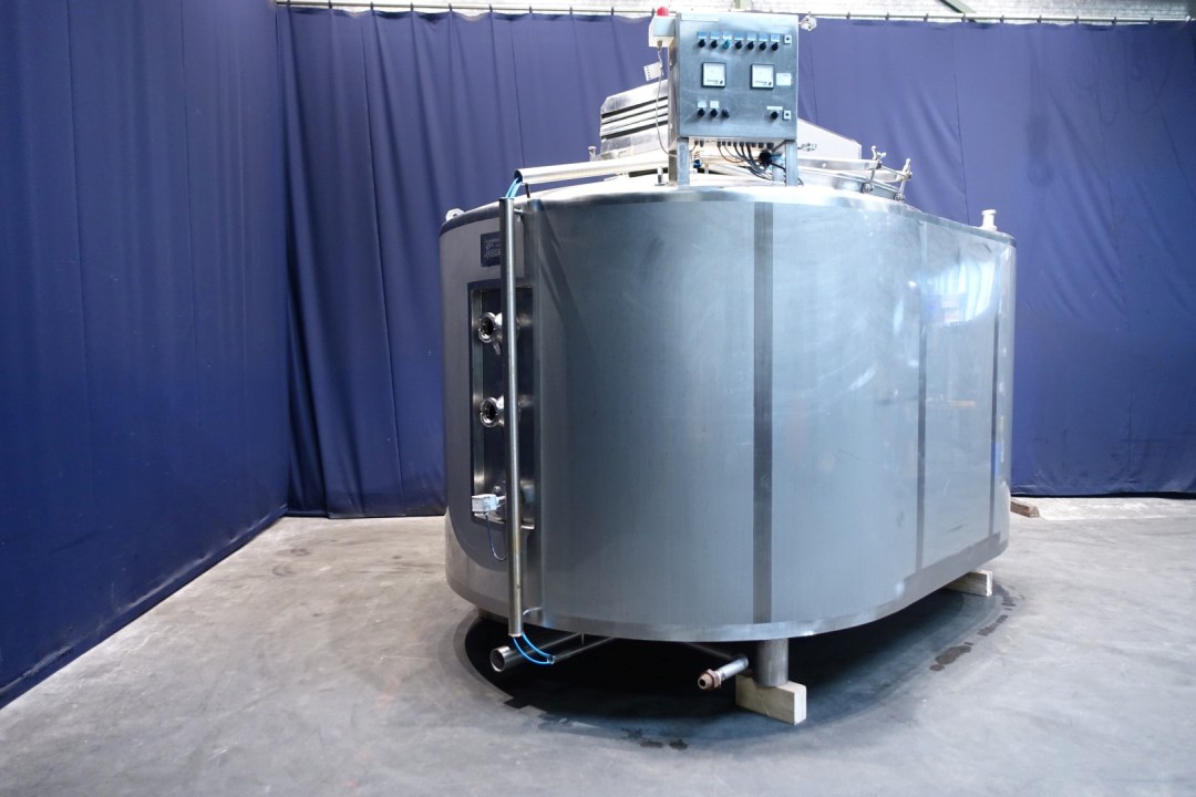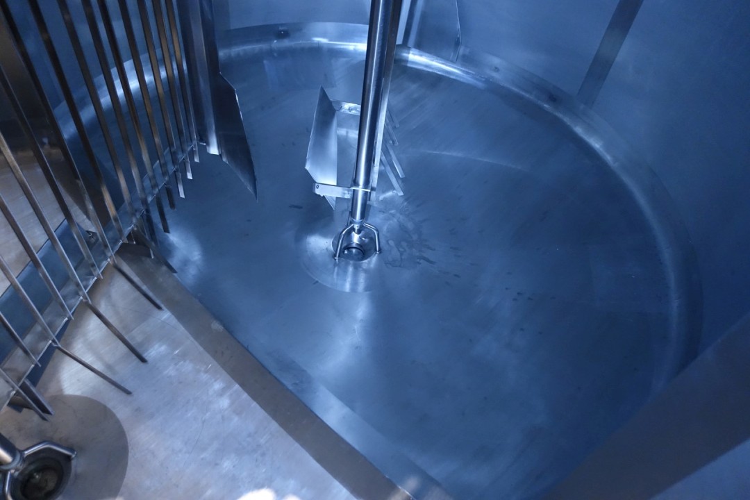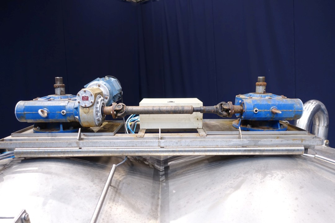Cheese vat - cheese curd making vat model doubel O. Manhole on top 53x40 cm - sightglass with lamp, With 2 whey outlet valves in the vatwall and 2 curd outlet valve centered in the middle conical towards with 100mm pipe. Drive motor 4,0 kW - 8,9 A - 1435 rpm - 50 Hz - reductor i = 30. CIP cleanable.Total dimensions: 420x265x315 cm (lxwxh) - weight: 2.702 kg's. New controls and auxilieries can be offered on request.