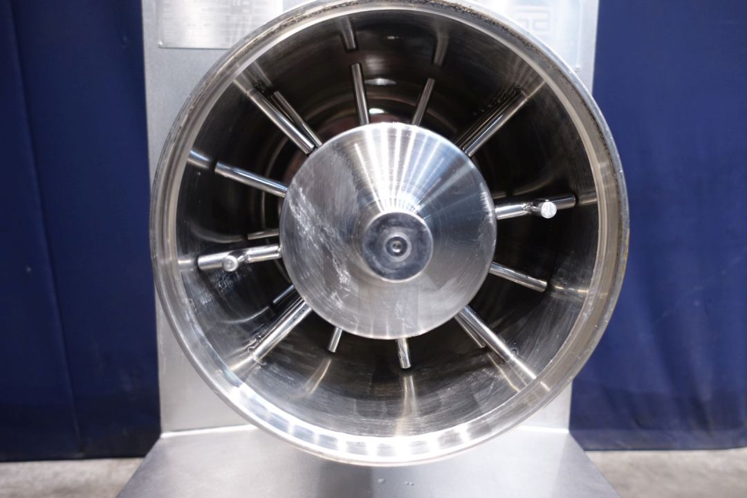 Stainless steel pinmixer with 1 cylinder. Cylinder diameter 300 mm, length 300 mm. 14 pins on the shaft/rotor and 24 pins on the double jacketed cylinder housing. Motor power: 37 kW - 72 A - 1.475 rpm. Design pressure: 80 bar, max. work temperature 100 °C. Excluded controls and documentation. Total dimensions: 68 x 119 x 140 cm - weight: 618 kg's.