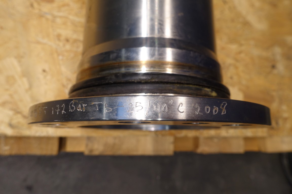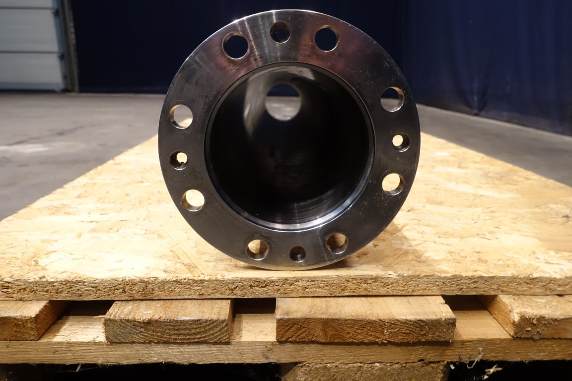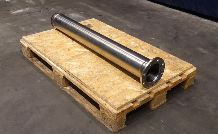 Tube of a crystalliser / scraped surface heat exchanger for margarine / shortening / pastry. Used on a product pressure of 120 bar. Tube: diameter inside 125 mm, diameter outside 131 mmand length: 1135 mm. Cooling surface: 0,42 m2.