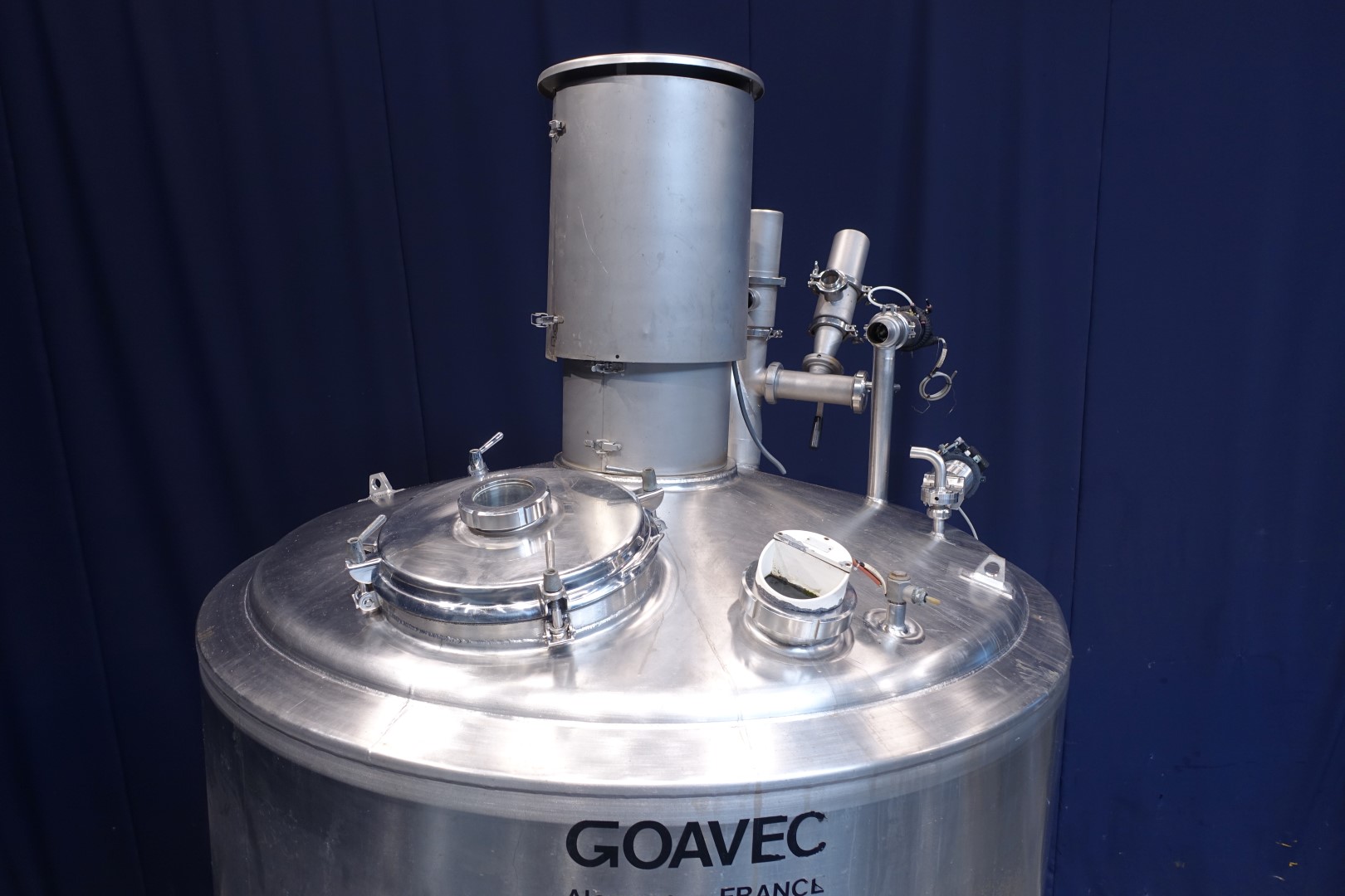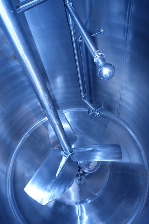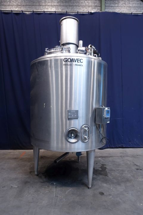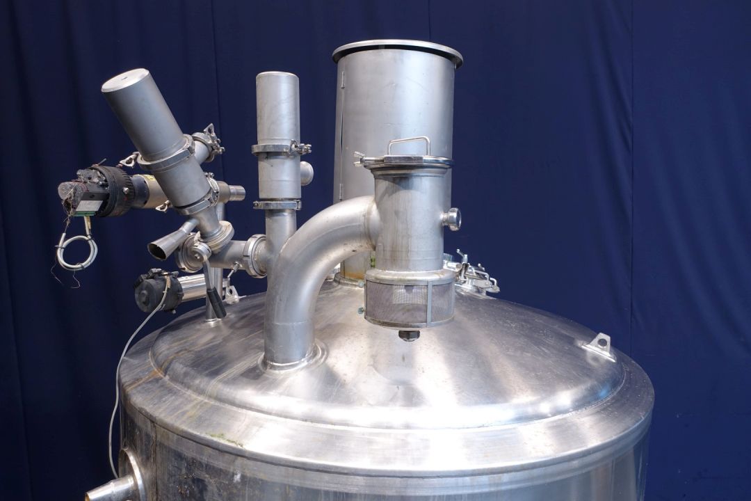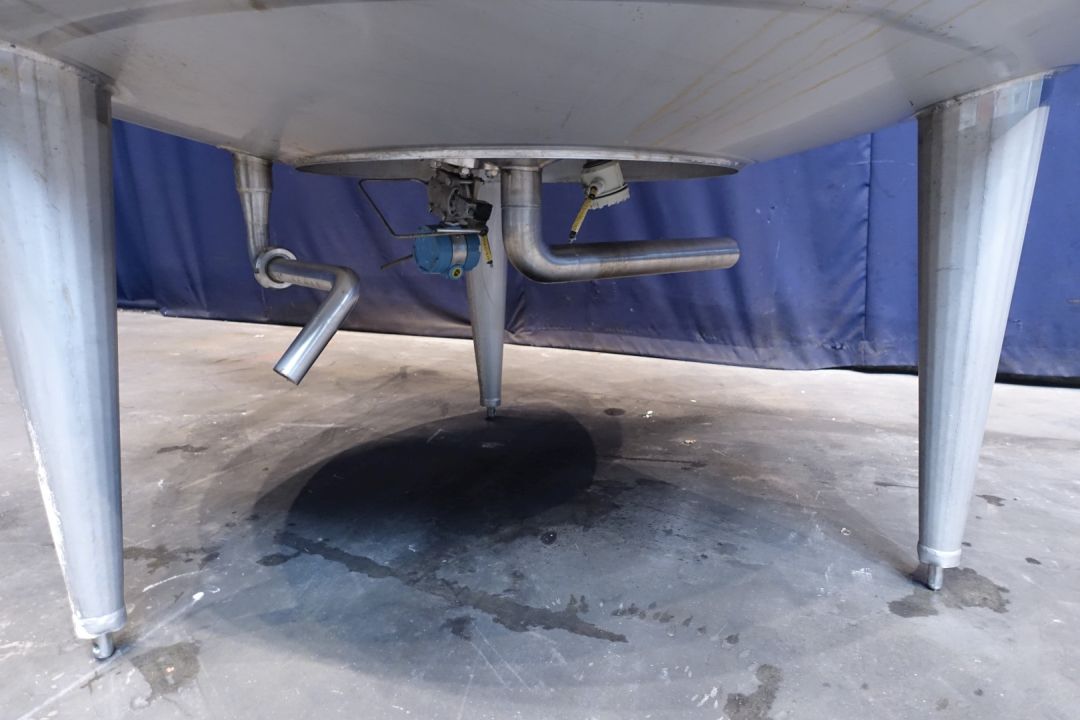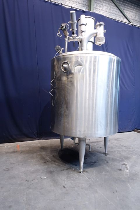 Double jacketed process tank. Top driven blade-propellor agitator, suitable for culture, cream, yoghurt other fermented products. Agitator Motor power: 1,1/1,8 kW, 2 speed: 25/48 rpm. Pressure in jacket: 3 bar. Pressure in tank +0,8bar air or 0,5bar steam. Product outlet 76 mm / 3" outlet height: 54 cm. Including sample valve. Prepared for PH measurement system (sensor excluded). Temperature sensor, pressure transmitter (FMC), high and low level sensors (E&H). CIP cleanable breather with over and under protection system. sterile air connection. 3 CIP spray bowls (also under the agitator blades). Oval manhole in top with sight glass, diameter 41-45 cm. Sight glass with a light. 3 Adjustable feet. Inside dimensions of tank: Ø 158 cm and height 175 cm. Total dimensions: 210 x 210 x 360 cm.