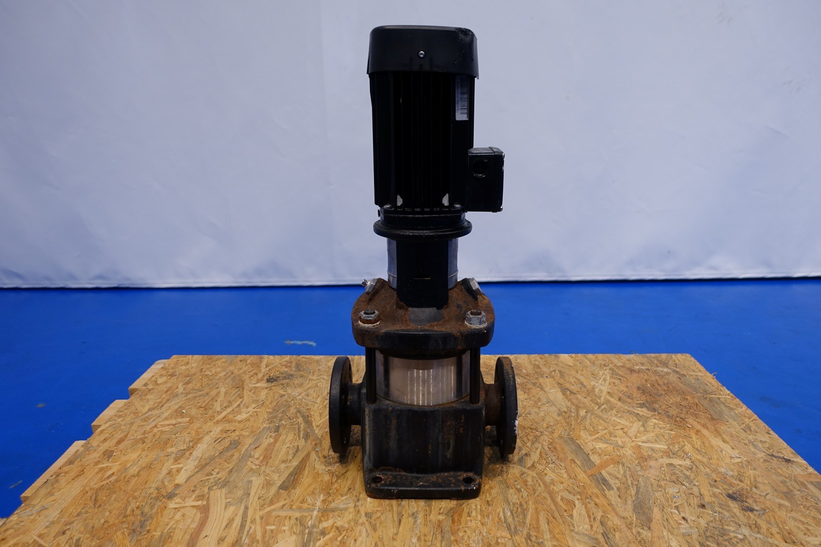Grundfoss water pump. Non sanitairy. Serial number motor: DE6204.27.C3. Connections: (In) 2,5" Flange / (Out) 2,5" Flange. Total dimensions: 28x24x63 (lxwxh) cm - weight: 70 kg.