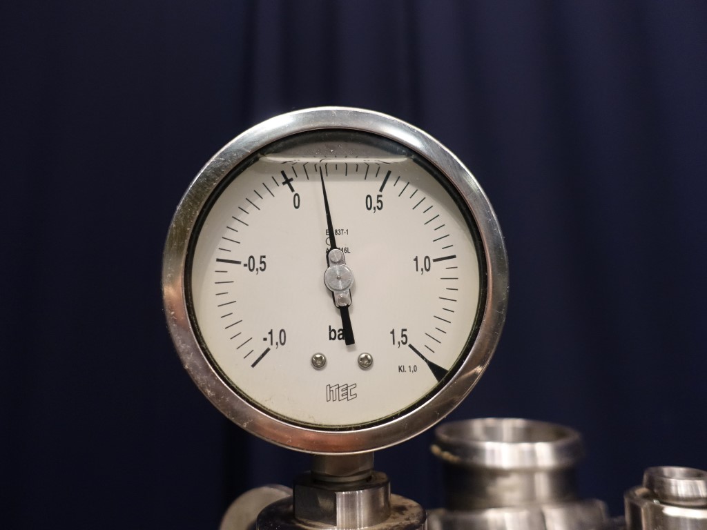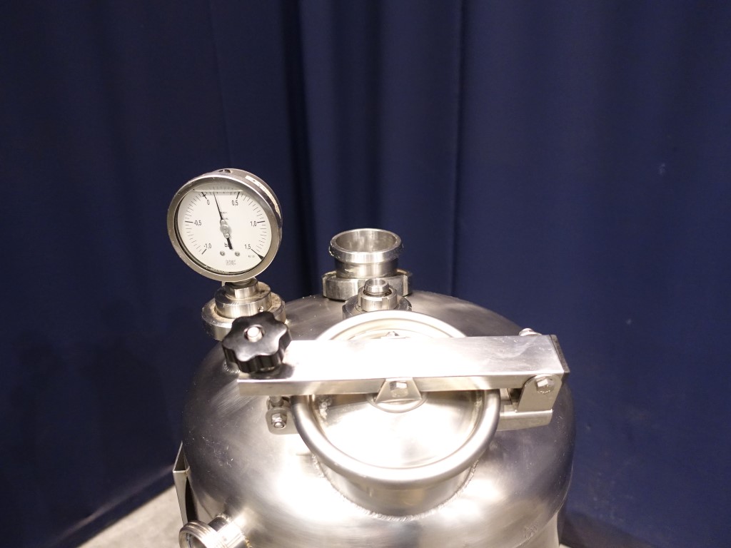 Single jacketed tank, volume 170 liter. Year: 2005. Connections: 1x 2'' SMS, 2x 2,5'' SMS, 1x 1'' SMS + spray bowl + 1x 3'' SMS. Manhole. Pressure manometer.