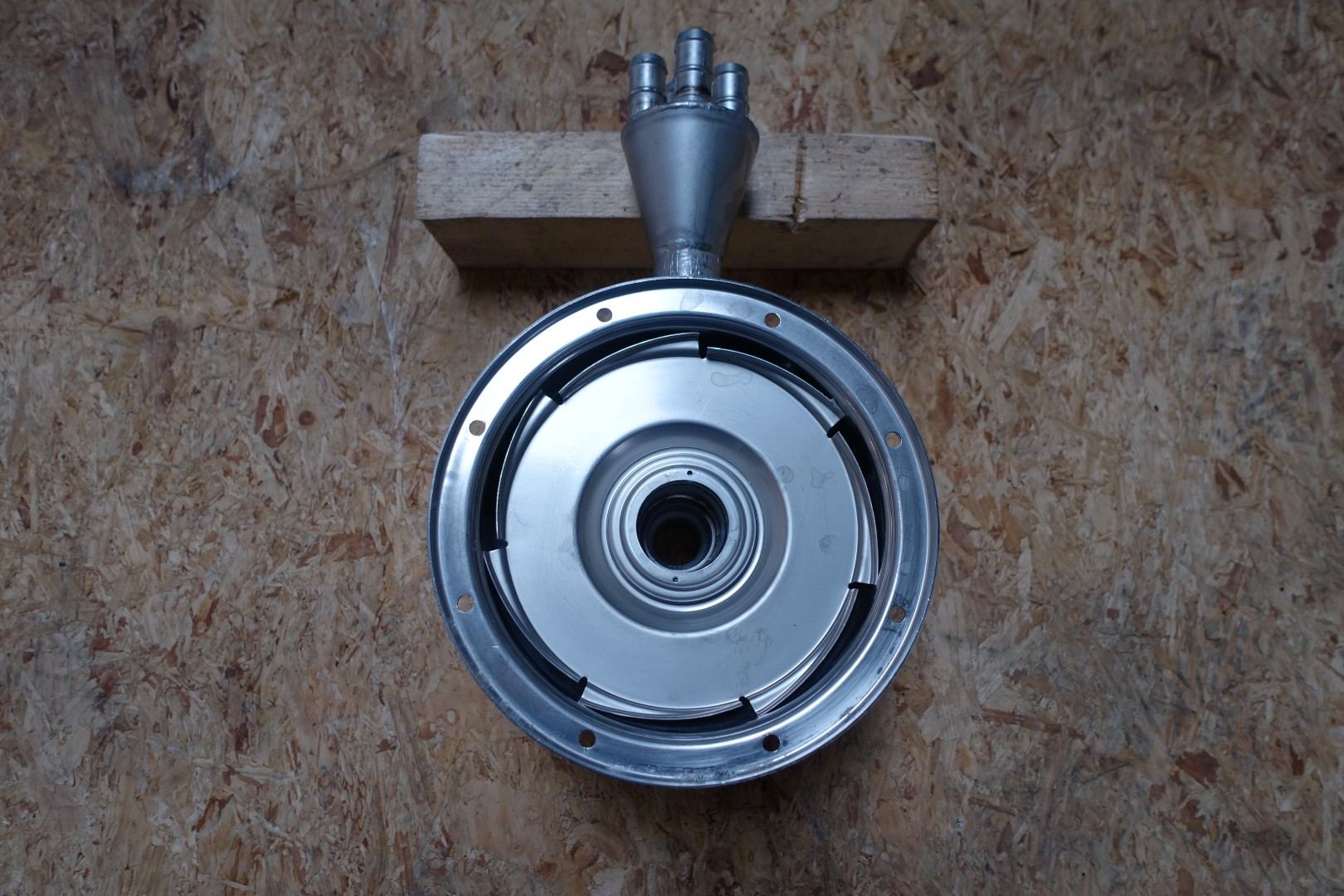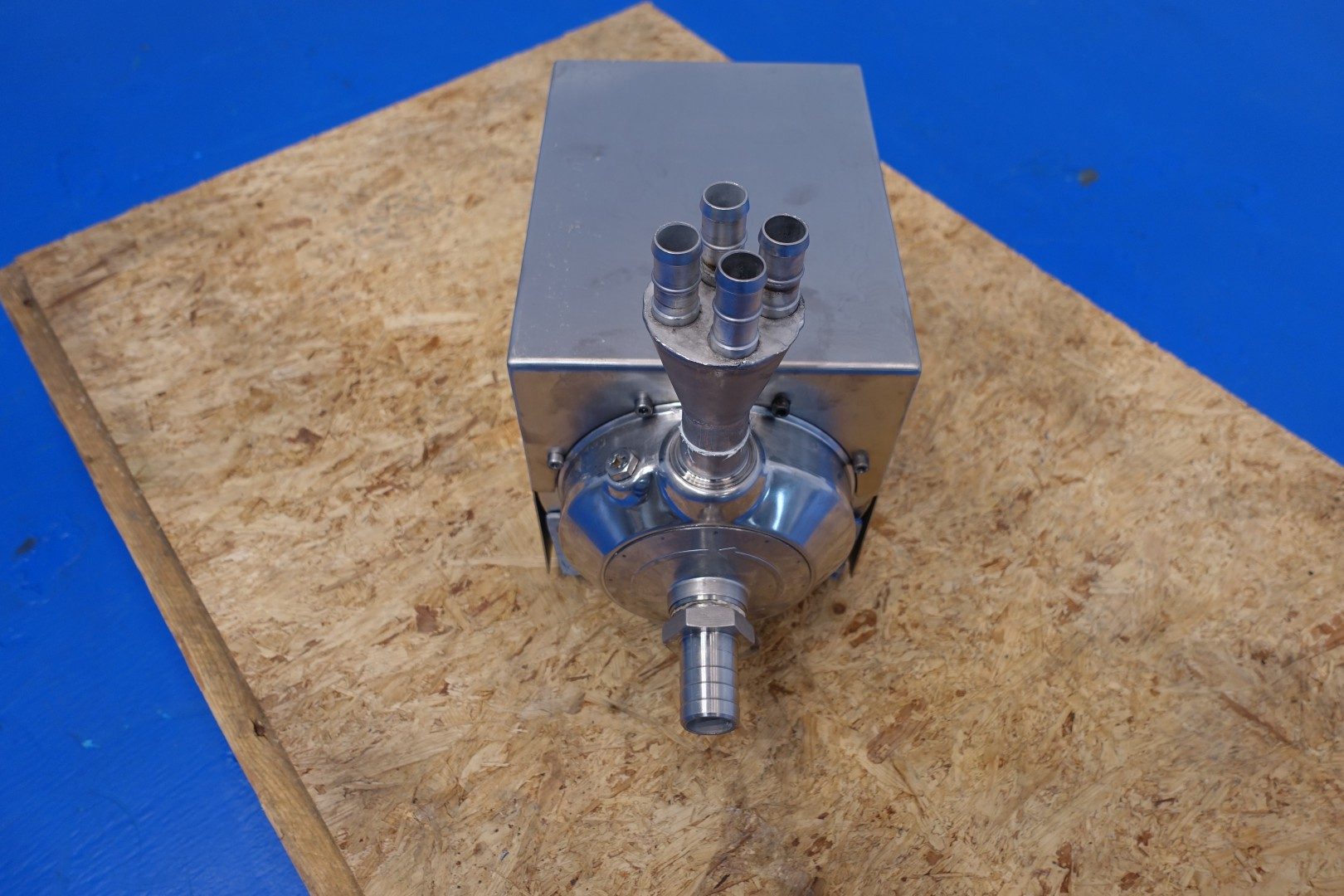 Sanitary centrifugal pump. 4-Way outfeed. Power: 0,55 kw - 2,9 A - 2.800 rpm - 50 Hz. Impellor diameter: 155 mm. Connections: (In) Ø 32 mm hose / (Out) 4x Ø18 mm hose. Total dimensions: 44x22x36 (lxwxh) cm - weight: 15 kg.