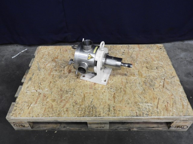 Sine shaped impellor. Flow per revolution: 0,224 ltr. Maximum particle size: 22 mm. Maximum speed: 800 rpm. Maximum capacity: 10.500 ltr/h. Shaft diameter: 25 mm. Shaft height: 146 mm. Connections: Tri-clamp 60 mm/60 mm. No current drivework or motor.