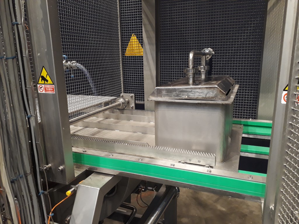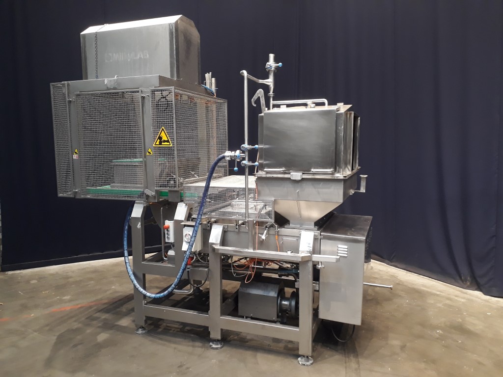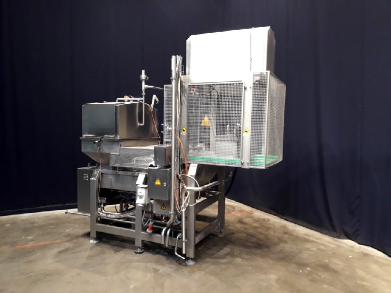 Mozzarella moulding machine. 2 head moulding machine for pasta filata / mozzarella cheeses. Pushing and forming system. Moulding head dimensions: 300 x 225 x 170 mm. Useable for up to 15 kg mozzarella bricks. Electrical heated jacketed moulder to keep the ideal product temperature. Non stick Teflon coating inside the machine. 4 augers with 2 variable speed motors, controlled by frequency inverter. Cheese expulsion by pneumatic cylinder, discharge. Previously used in combination with a thermoforming machine, hot fill. The thermoforming machine is excluded. Complete with CIP collection vat for CIP return with Alfa Laval pump. Excluding controls, including documentation.