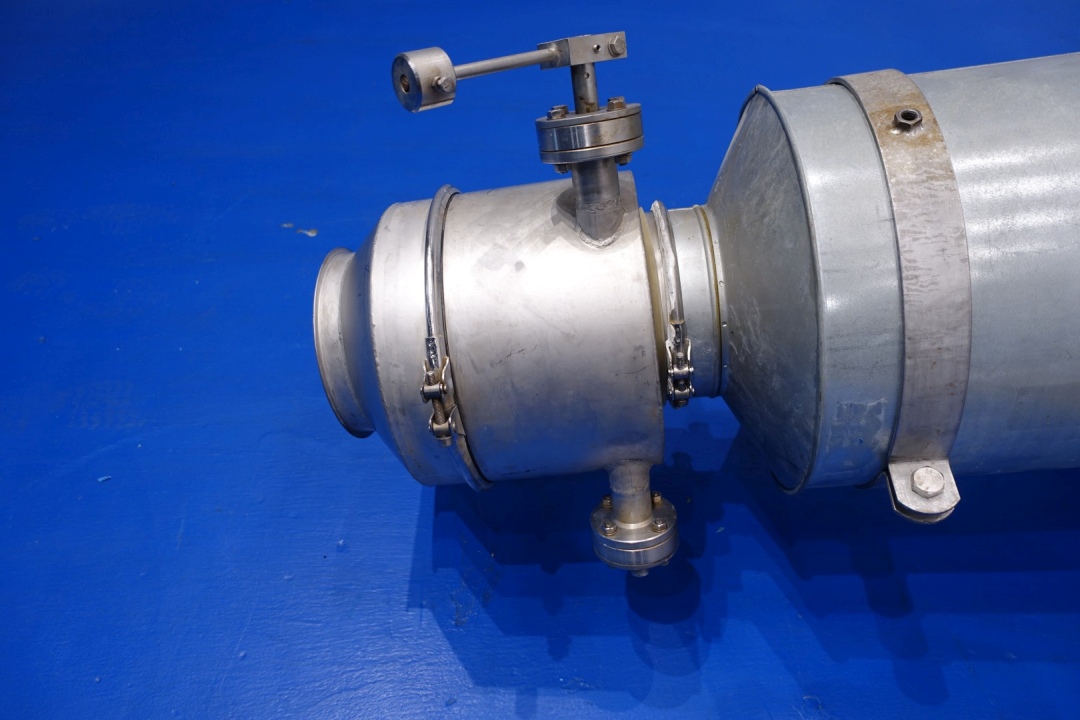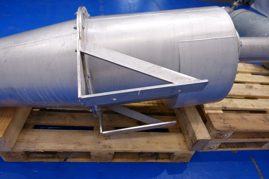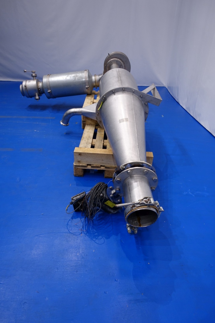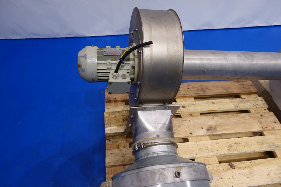 Powder blower system with MEB engine: 0,75 kW - 1,7 A - 50Hz - 2.850 rpm. With wall support. Connections: 2 x 200 mm clamp and 1 x 4" Din. Total dimensions: (lxwxh) 350x190x100 cm - weight: 297 kg.