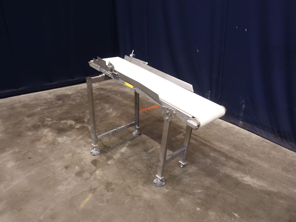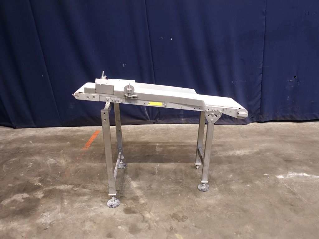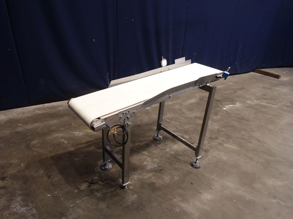 Belt conveyor. Effective Belt lxw: 130 x 30 cm. Motor details unknown. Total dimensions: 140 x 65 x 100 cm.