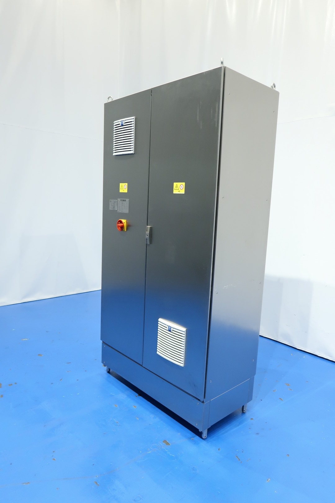 Control cabinet with Pilz servo motor. Originally part of a Benhil 8362 Wrapping machine for margarine. Power: 3PH/N/PE, 400 V - 25 A - 12,5 kW - 50 Hz. Controls: Siemens Simatic S7. Documentation: electrical diagram. Total dimensions: 120x60x234 (lxwxh) cm - weight: 300 kg.