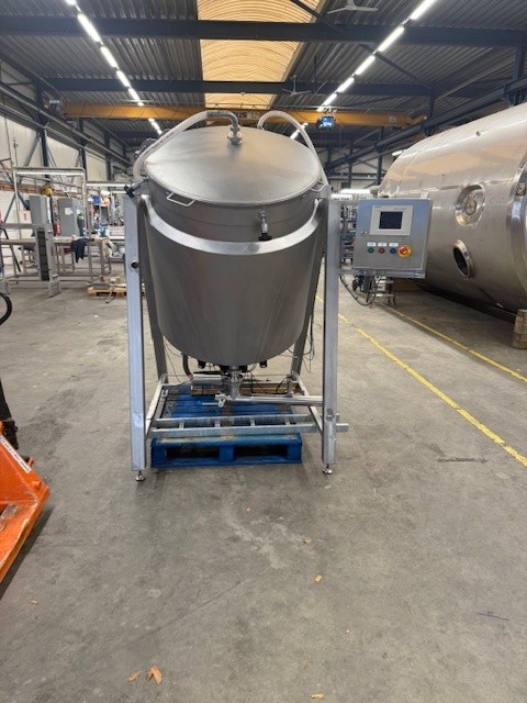 Mixtank with vacuum/pressure system on SS frame. Lid can be opened manually with 6x tightening clamps. Motor of agitator: 7,5 kW - 14,8 A - 1.445 rpm - 50 Hz. With right-angle transmission/reductor. Dimensions ca.: 175x150x225 (lxwxh) cm - weight ca.: 1.250 kg.