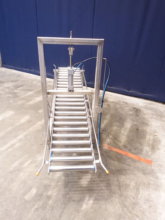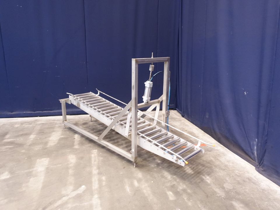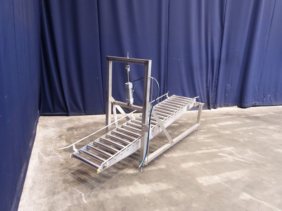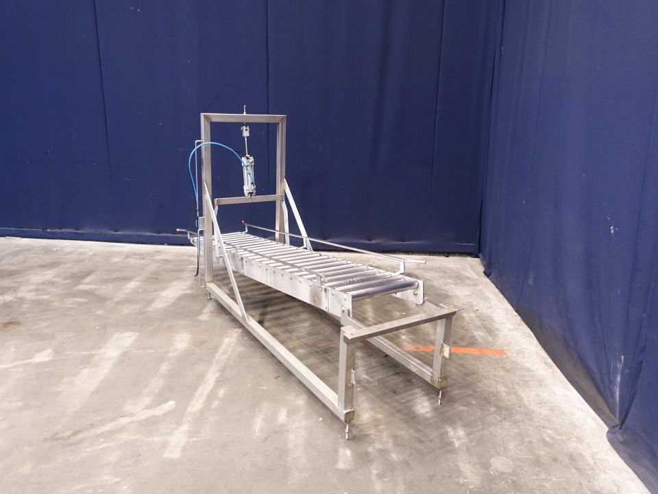 Rolling conveyor. Roller width: 40 cm. Length: 220 cm. Stainless steel frame and rollers. Including stopper.Total dimensions: 275 x 60 x 71 cm.