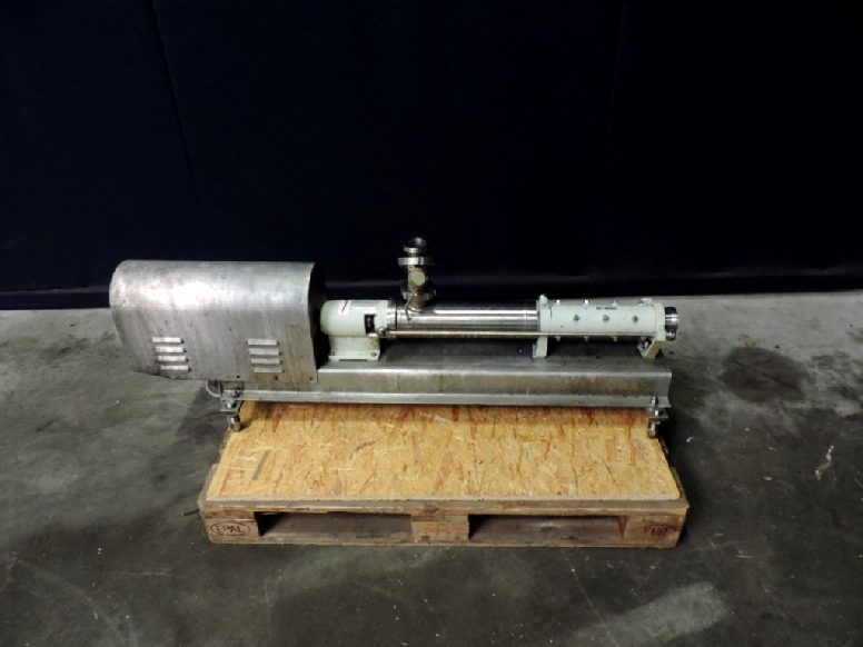 Screw pump. 2 windings. Max pressure: 12 bar. Current motor: 1,1 KW, 2,35 A, n1: 2860 rpm, n2 = variable 185 to 295 rpm. Stainless steel cover over electric motor. Frame mounted.