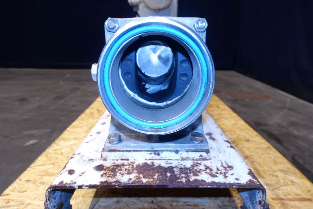 Screw / mono pump. Current motor: 3 kW - n2 = 321-53 mrpm. Mechanical variator. Steel frame mounted. Connections: DN100/DN100