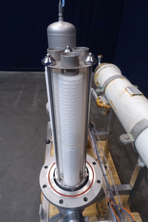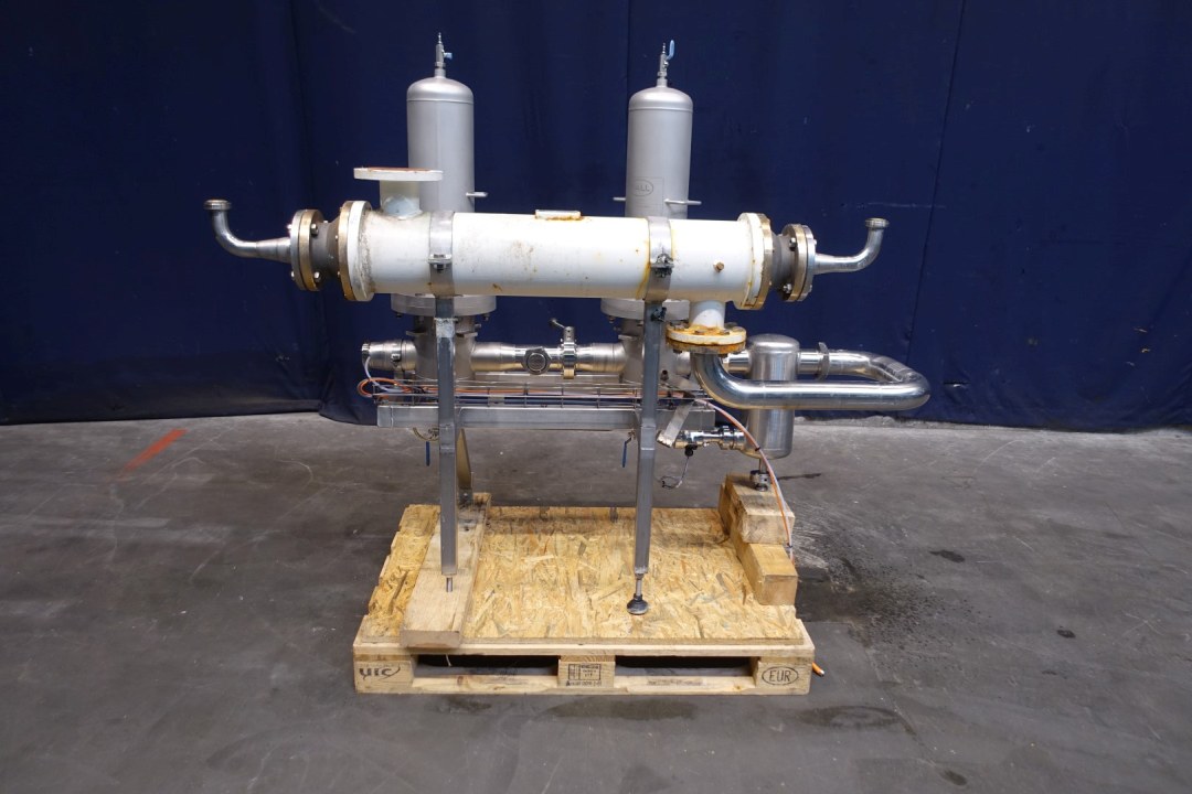 Air Filters 2 pieces on a skid. Stainless steel housing. Each filterhouse with 3 filters. Temperature up to 140°C, 5bar. Skid with pressure transmitter and tubular heat exchanger. Total dimensions: 180x65x150 mm (lxwxh) - weight: 284 kg's.