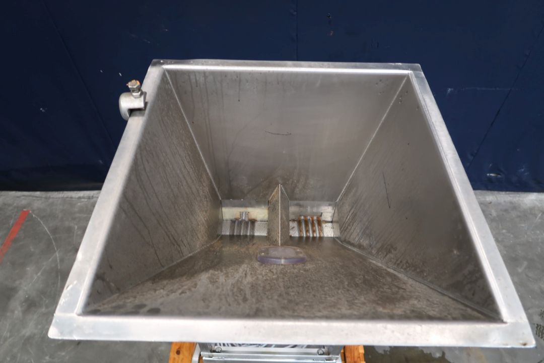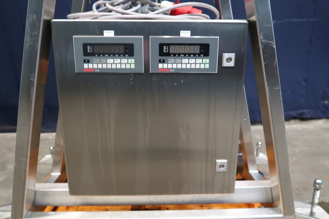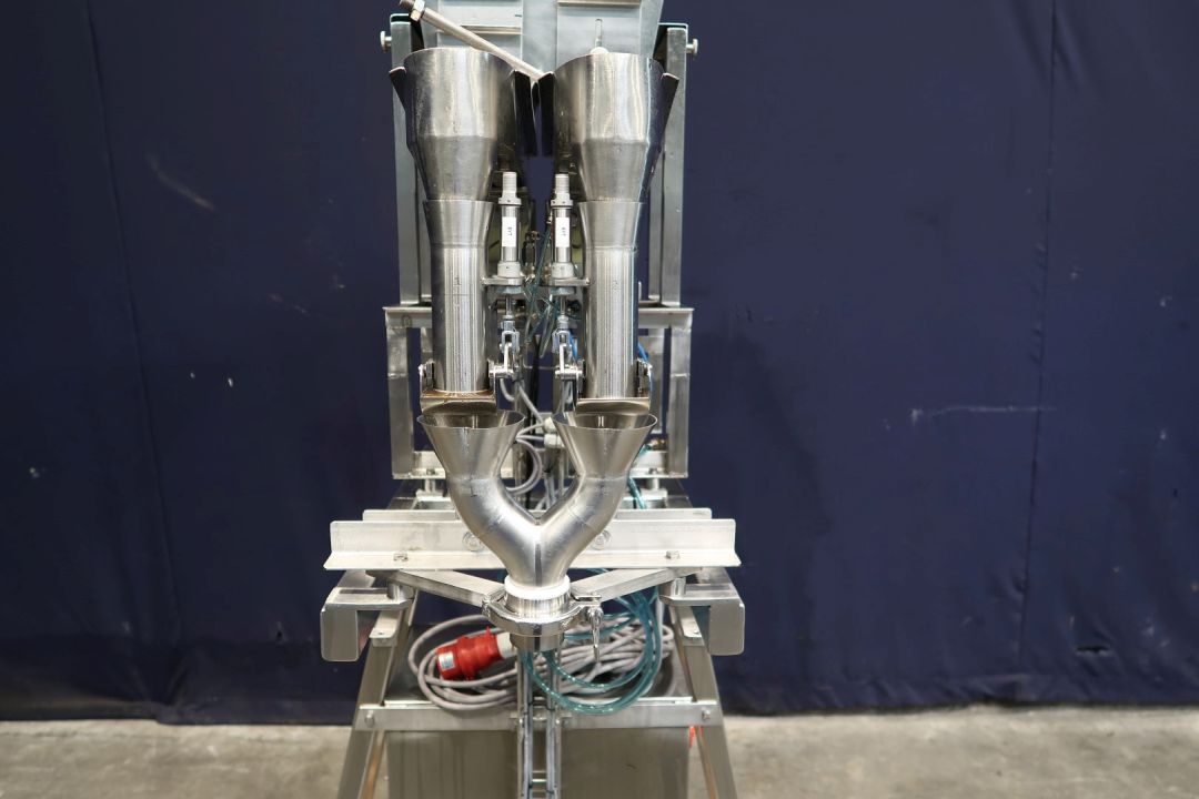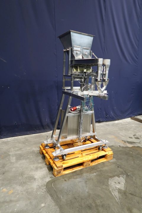 Twin head vibrating doser for dry products, like cereals. Can be mounted on top of a filling machine / filling conveyor. Hopper of ± 70 liter. 2x Vibratory linear feeders, 2 Weighers (Flintec FT-13) and opening valves. Control panel with 2x frequency converters. Rebuild in 2006. Total dimensions: 120 x 100 x 222 cm.
