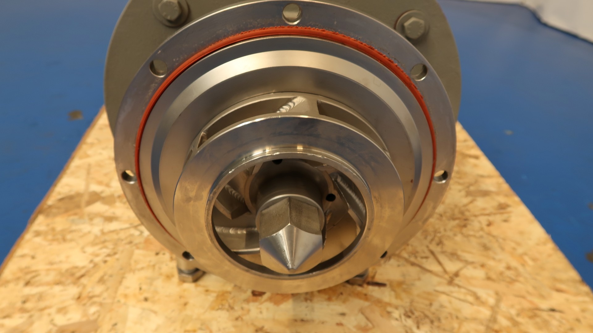 Self priming pump. Motor: 7,5 kW - 16 A - 1.455 rpm - 50 Hz. Impellor diameter: 165 mm. Pressure: 0,6 (90m3) 2,5 bar (45m3). Connections: (in) 116 mm DIN coupling / (out) 116 Try clamp. With non return valve. Dimensions: 100x35x90 (lxwxh) cm - weight: 226 kg.