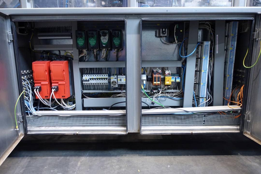 Fully automatic warp-around case packer, flexible format. Can be used to pack gable top cartons, bottles etc. in a wrap around plano carton. This machine is flexilbel in formats and was used for gable top cartons 12x1 liter (70x70 each carton; max capacity 20 boxes per min), 6x1 liter (70x70 each carton; max capacity 24 boxes per min) and box with 6 x 500 ml (70x70 each carton). Infeed system, flexible on formats. Plastic mesh belt, belt width: 620 mm, chain conveyor with /splitter to form the packs before it enters the machine. Belt width: 300 mm, distance between dividers: 180 mm and 230 mm, outfeed roller conveyor with over push system, roller width: 350-400 mm.400 V, 3 Ph, 50 Hz, 20 A. Total dimensions: 560x300x260 (lxwxh) cm. Weight: 2,000 kg. storage bin for glue granulate. Excluded: hotmelt glue unit itself. Documentation: Operational manual and electrical/pneumatic diagrams.