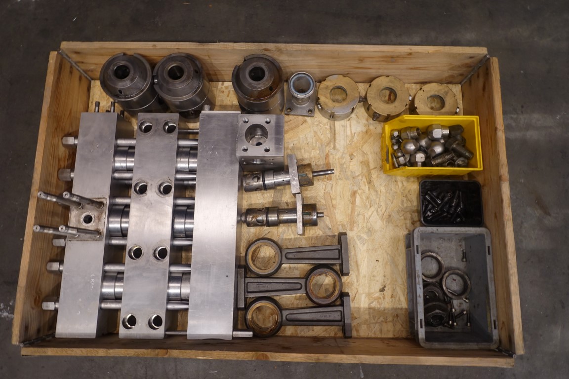 Parts of a Rannie BT 50.79H homogeniser. Frame + Motor (55 kW - 743 rpm - 105 A - 50 Hz - 415 V) + side plates and rooftop + Crankshaft + eccentric rings + 2 stage head + 3x connecting rods + 3x crossheads + 3-part ball valve block and 3x water-flushed sleeve nuts.